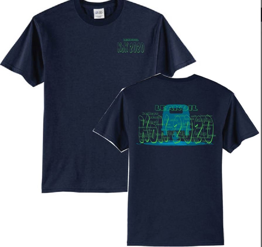 This year we are offering T-shirts, Long Sleeve T-Shirts, Crew Neck Sweatshirts, and Hoodies. We are also offering a printed LEAKOIL face mask. Here are some pics of the shirt and mask design.