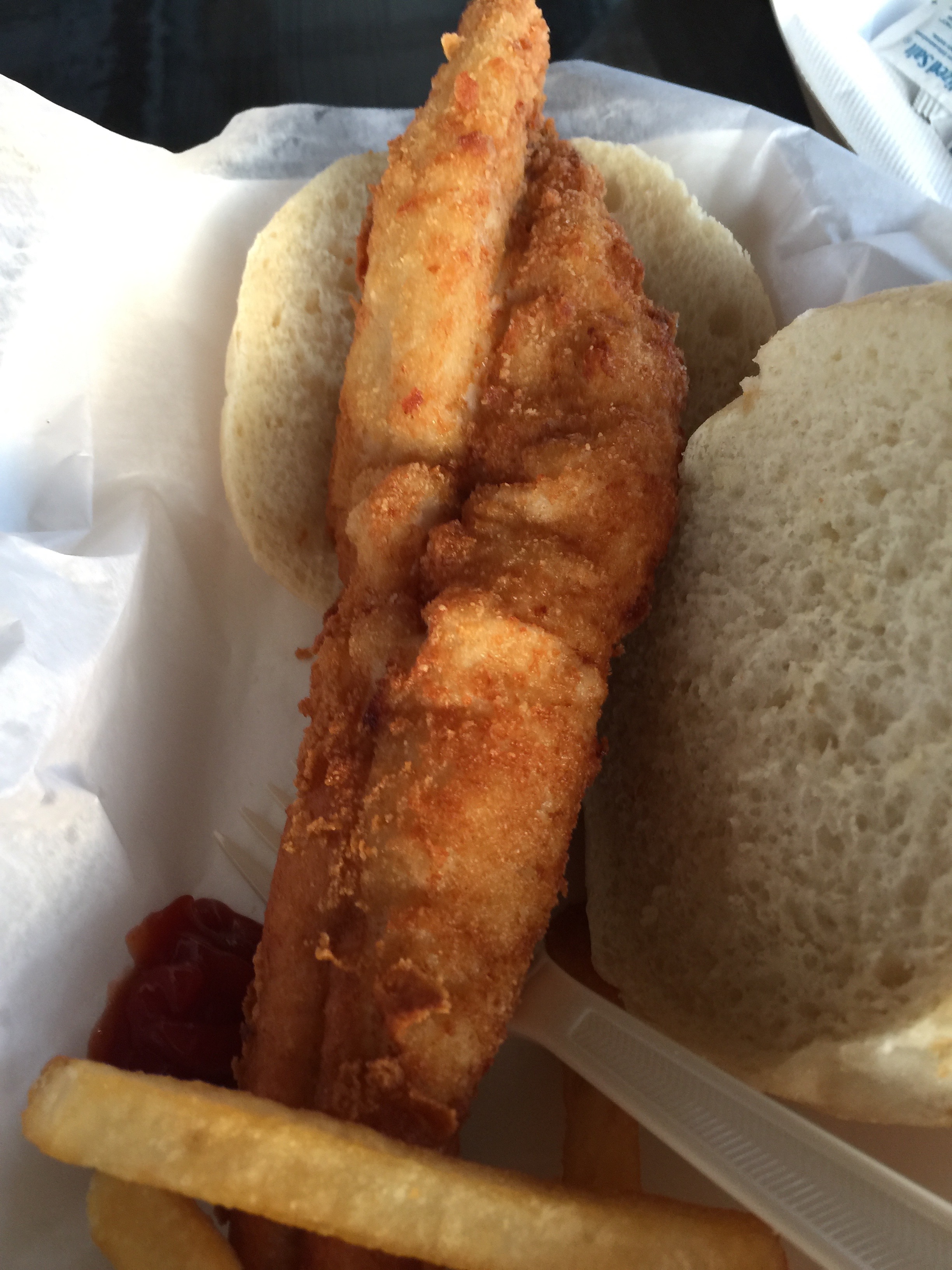 I like to try the Island fish fare. Even if the fried stuff doesn't always agree with me, I go for it. Here's the walleye sandwich from West Bay.