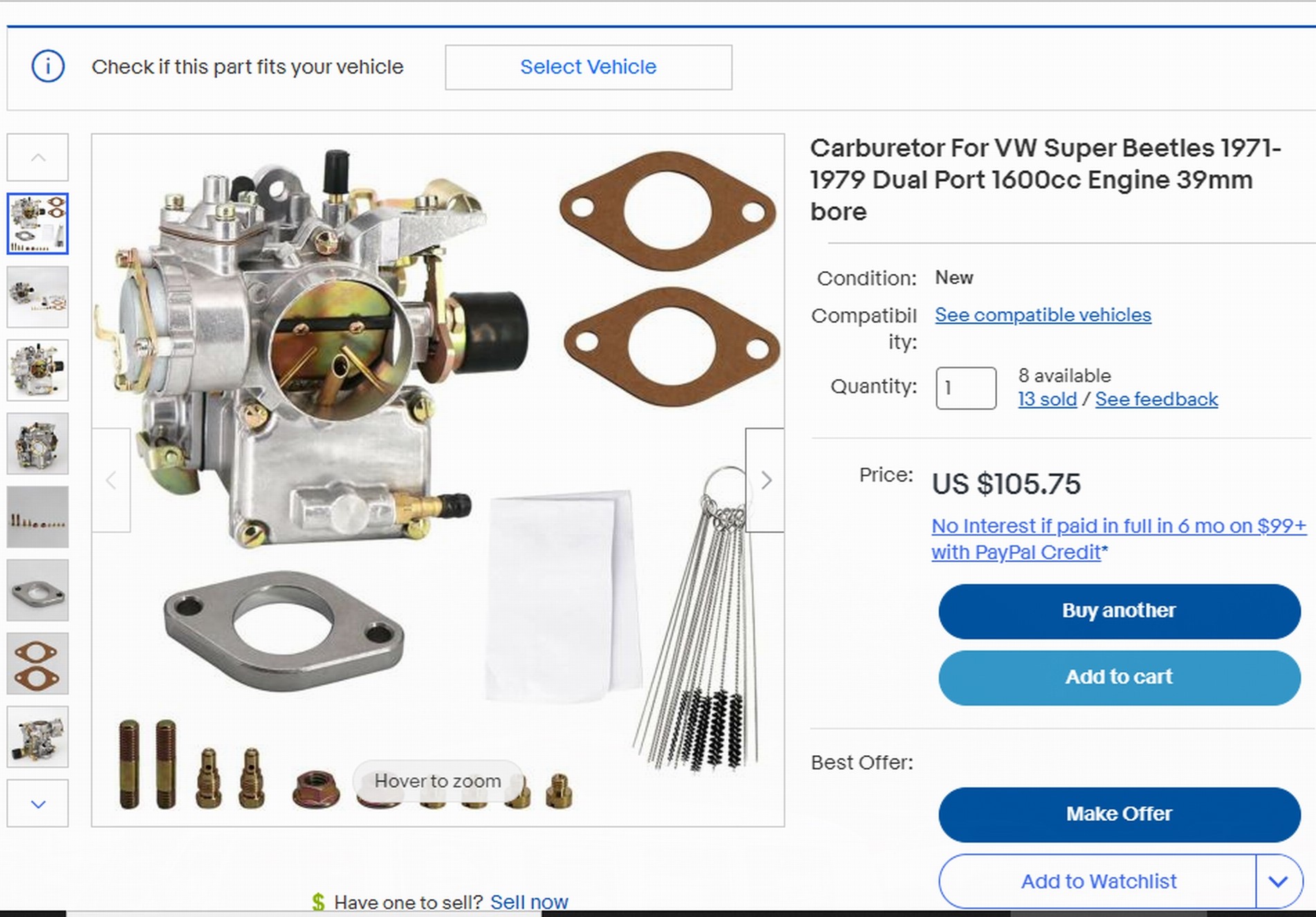 I read chatter on Samba about a 39mm PICT so I thought I'd give it a shot, I know Ebay would refund my money if I wasn't happy. For those not fluent in carbs, that means the venturi is 5mm (almost 1/4") larger than stock, which flows much more air. I bought this and installed it to replace the 34PICT and it works great, and gives at least 5+ HP, enough to feel. Really surprised at how well it runs, the only minor modification was the fuel inlet was setup for 1/4" hose rather than the 5.5mm that VW uses. It is a no-name Chinese unit with nothing cast into the carb at all.