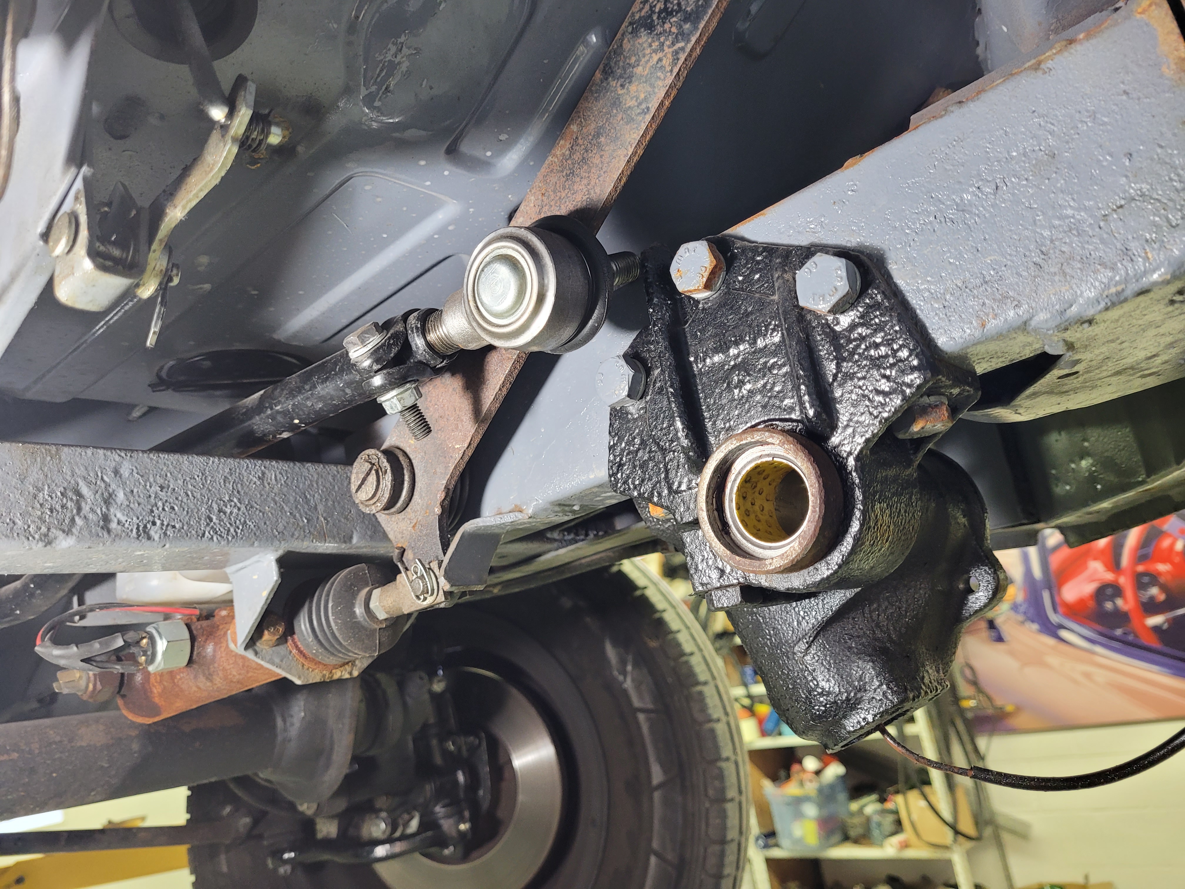 Bus 2 is getting a front suspension refresh. I sent the spindles out to be rebushed