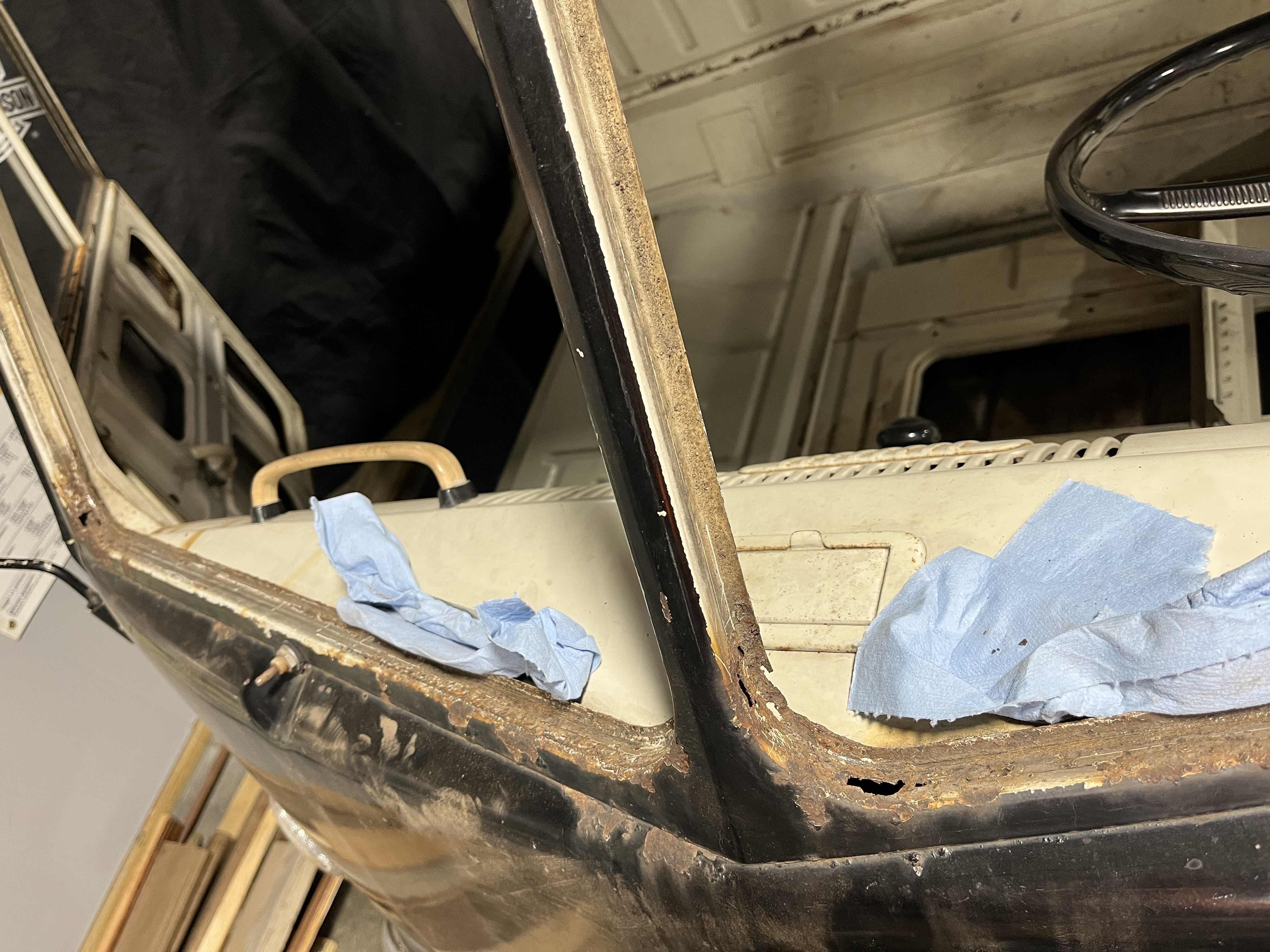 First priorities are to get some safety upgrades like the dual master cylinder and disc brakes up front. There will be some structural frame welding and a new treasure chest floor which appears to have gone missing. LOL