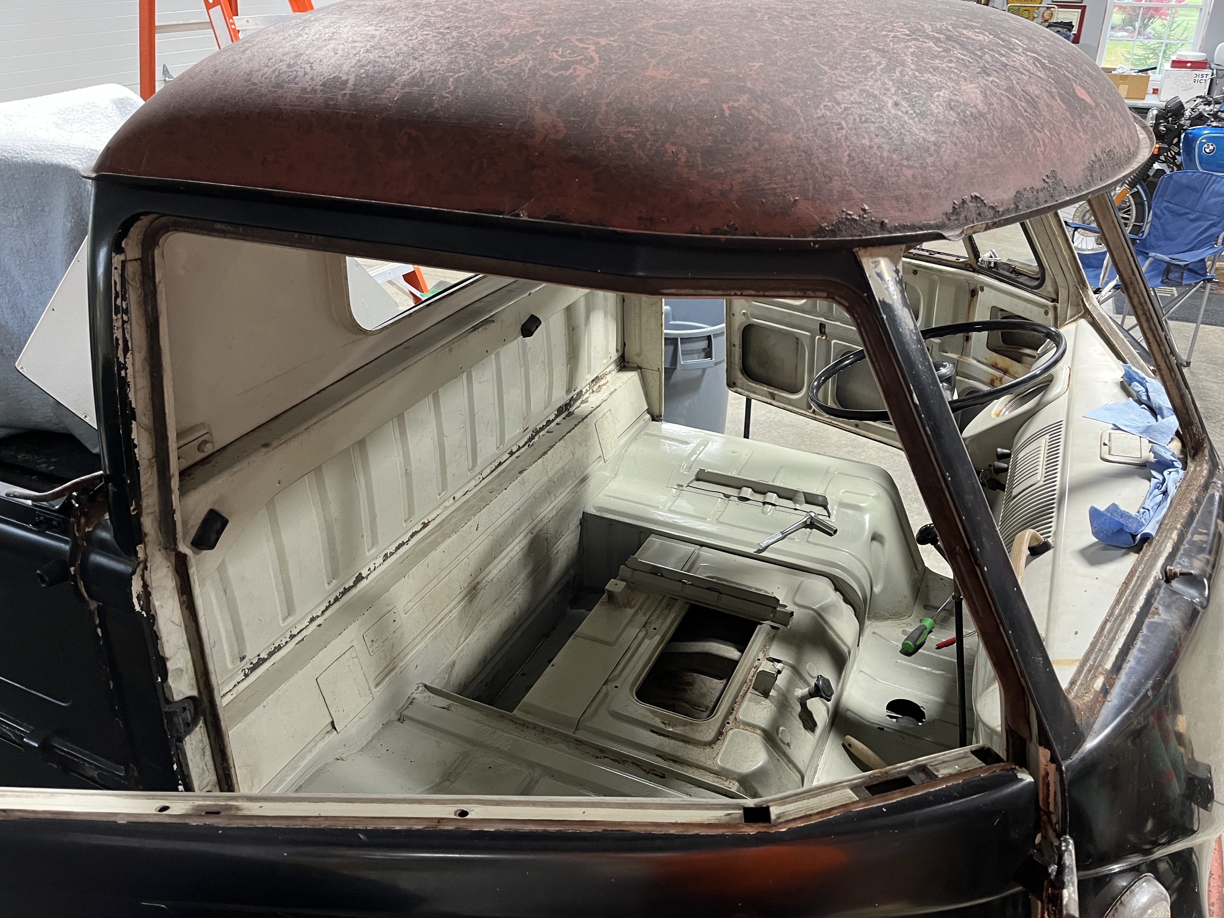 First priorities are to get some safety upgrades like the dual master cylinder and disc brakes up front. There will be some structural frame welding and a new treasure chest floor which appears to have gone missing. LOL