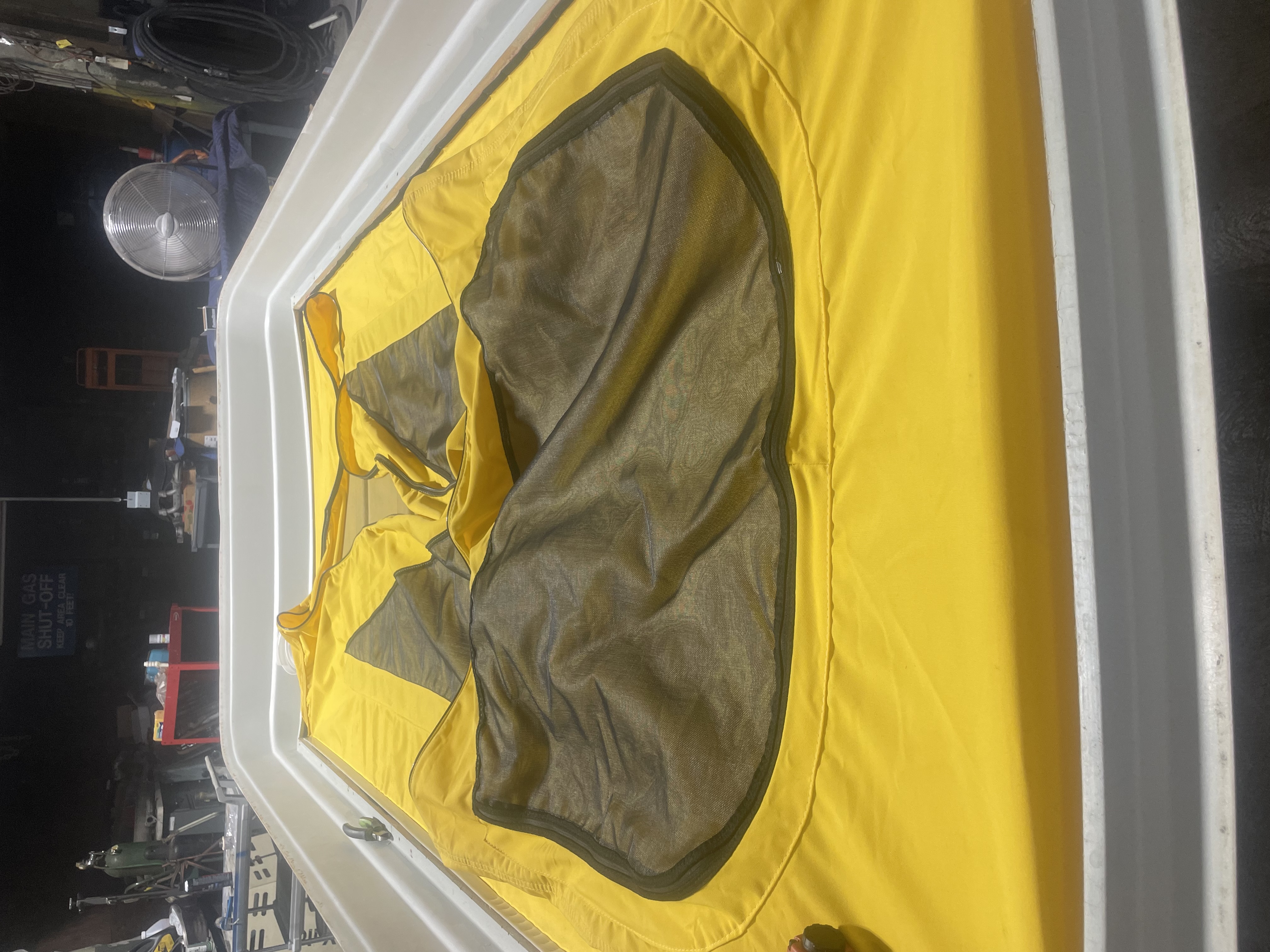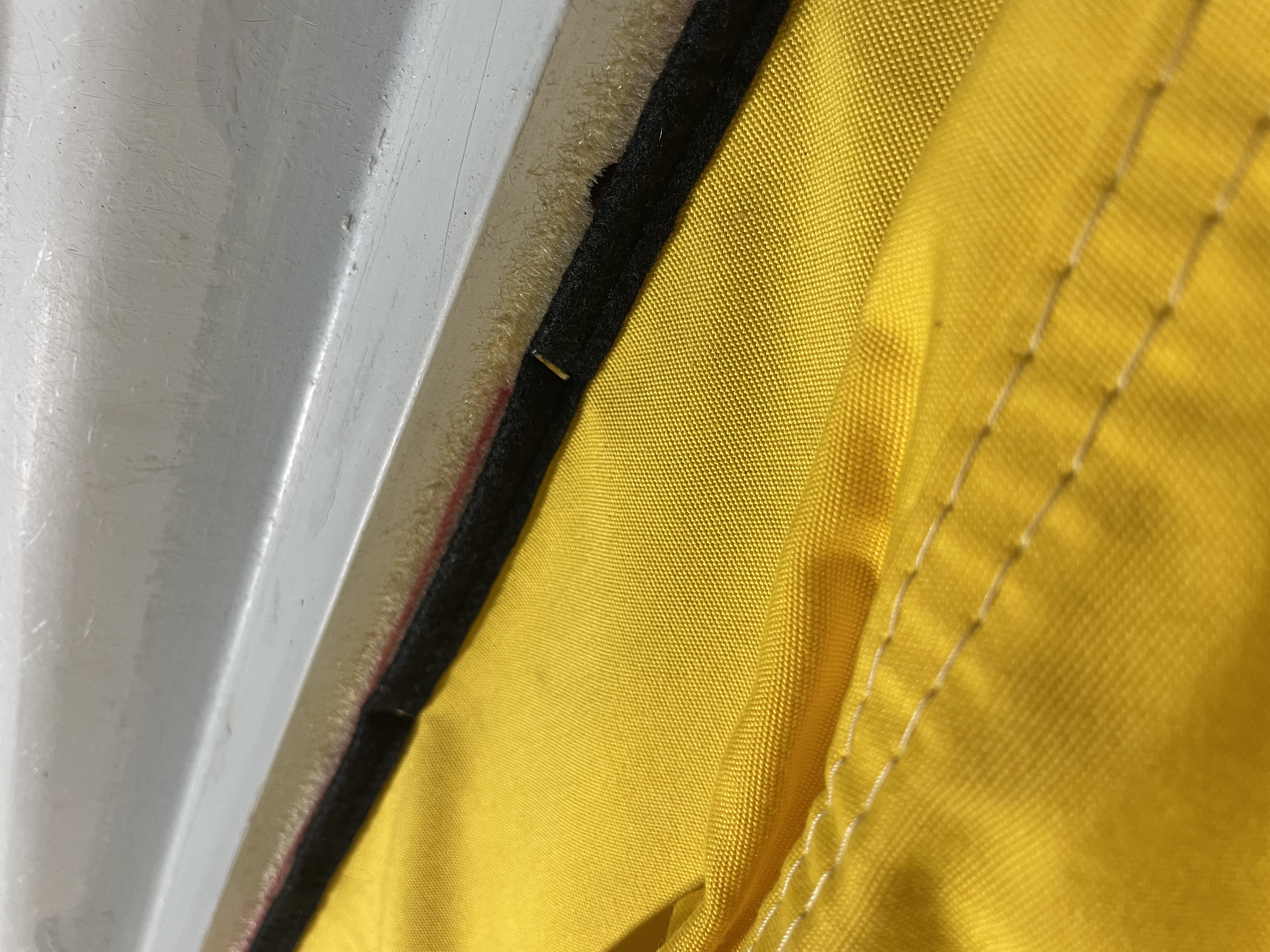 Then the reassembly started. The canvas replacement went 1/2 right and 1/2 wrong. New canvas matched up nicely to old. I stapled in the new canvas in the same spots as the old one was. But, I didn't take into account that the old canvas was stretchy cotton and then new canvas was a stronger stiffer synthetic material. So I ended up having to pull staples towards the short sided rear and give myself every millimeter of fabric at the bottom.