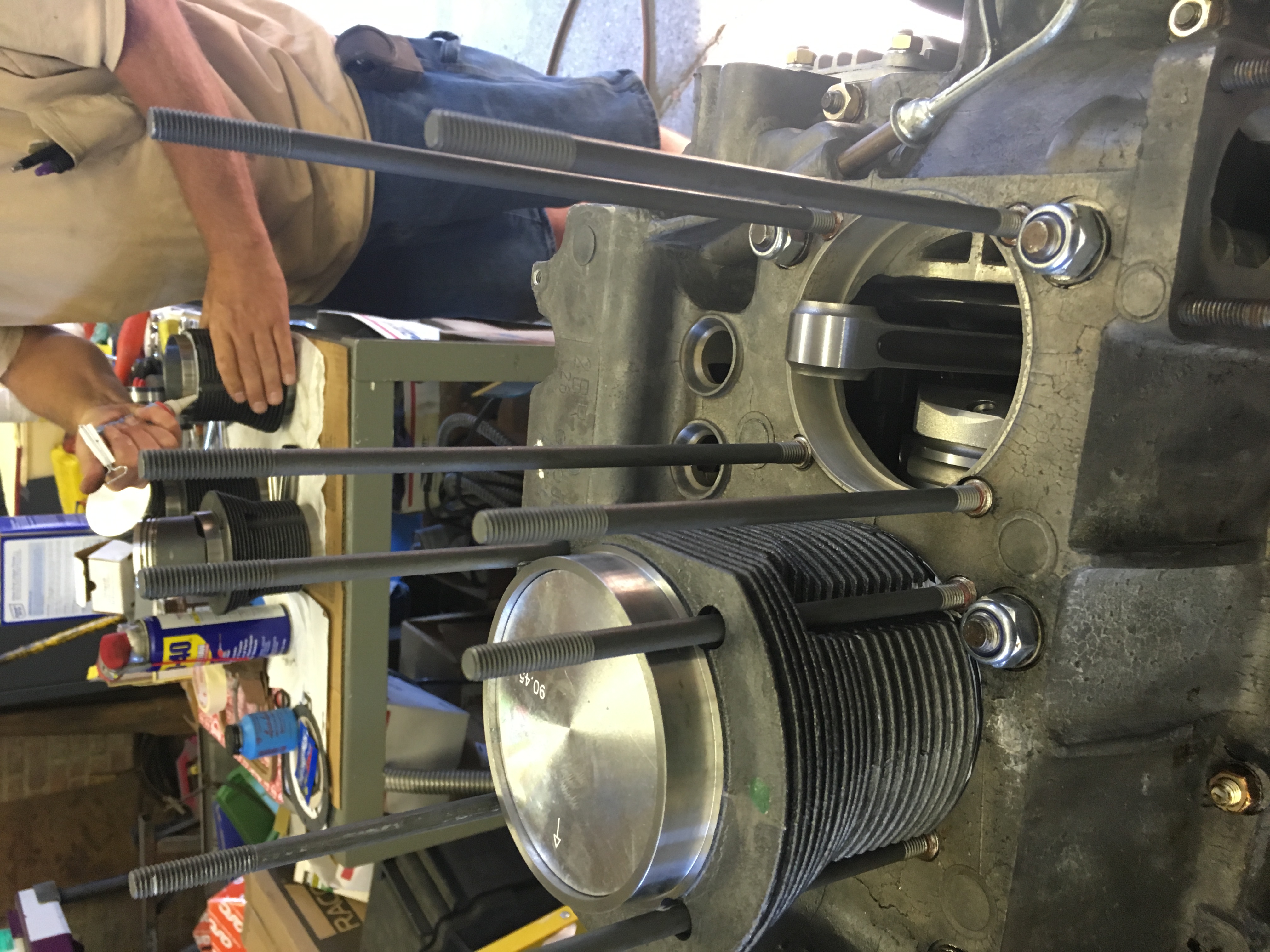 First before assembly was the drilling and tapping of the thermostat bracket hole. The case is a late brazilian AS41 replacement and the boss is there but no hole. After that was addressed we started to assemble the 1-2 side. But we ran into some issues with the new head studs. They're a 1/4" to long and needed to be trimmed down. Especially the ones underneath the rocker assemblies. After that everything went well. Just try not leave out important parts