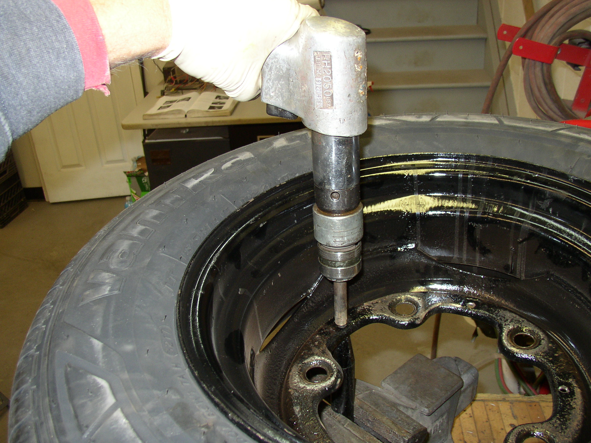 I just got that hubcap clip rivet tool -- haven't used it yet. I think it's weird that they sell the tool to hold the rivet/clip, but you still have to cobble together a bunch of stuff to hold the wheel in place.