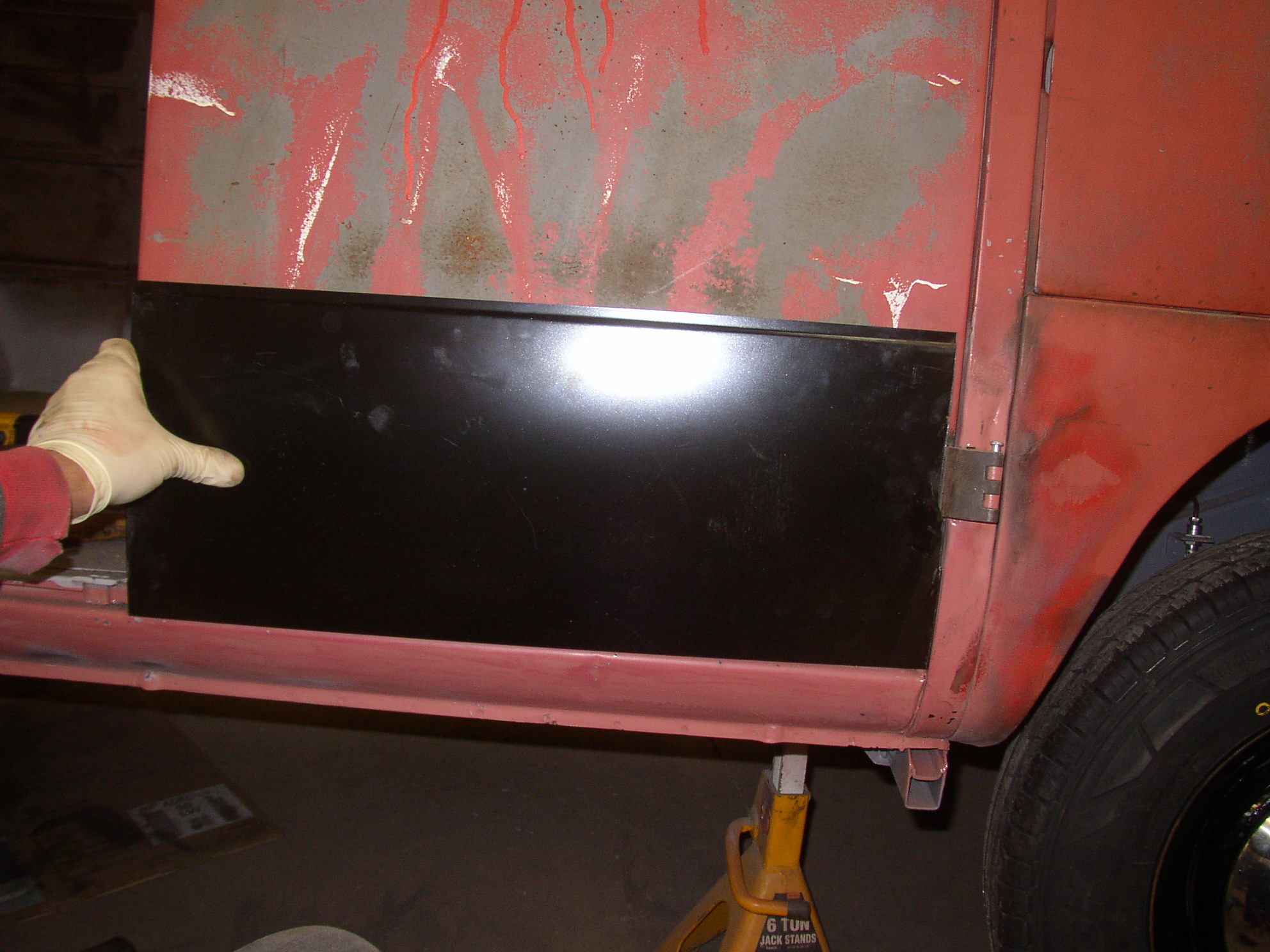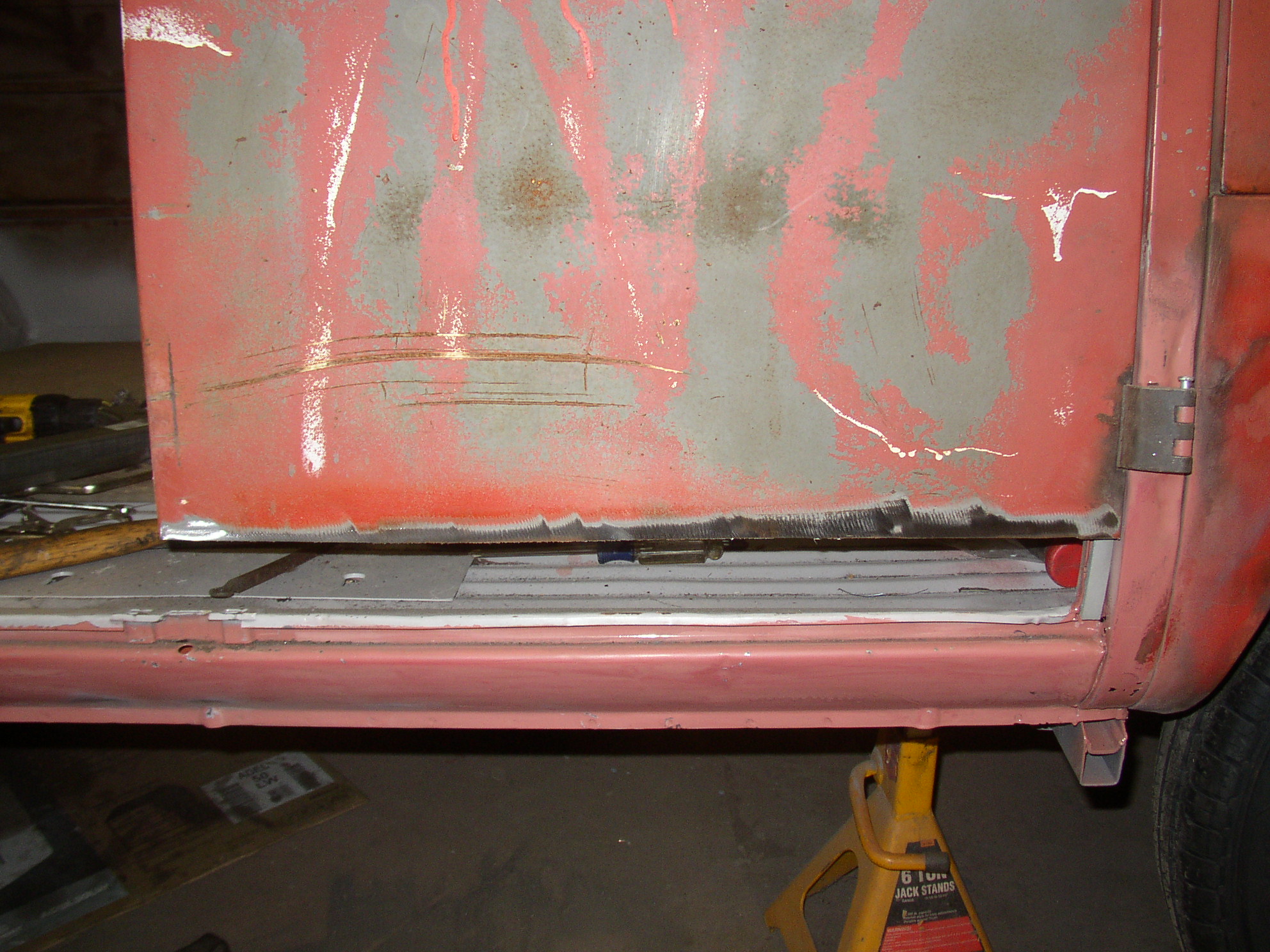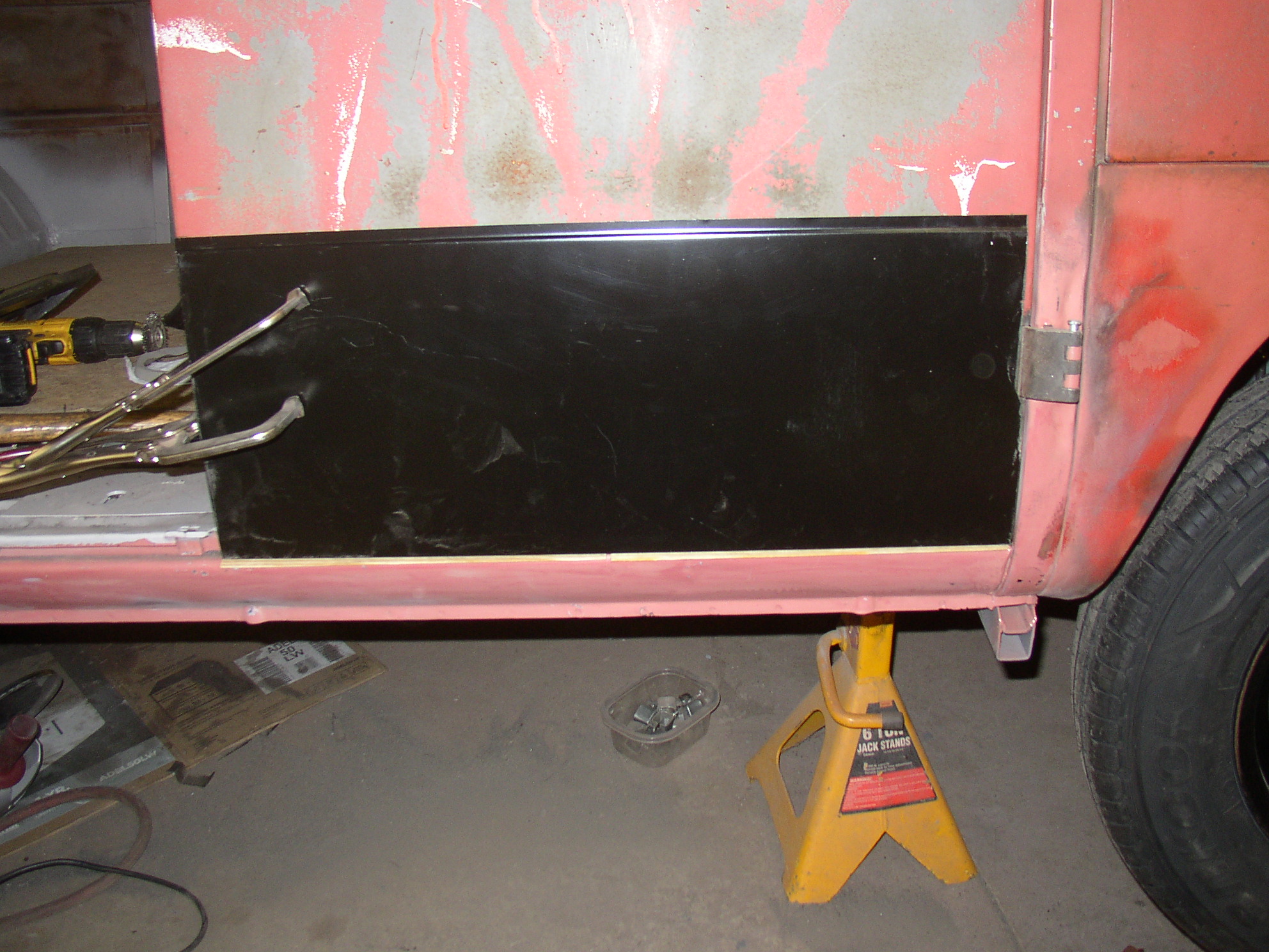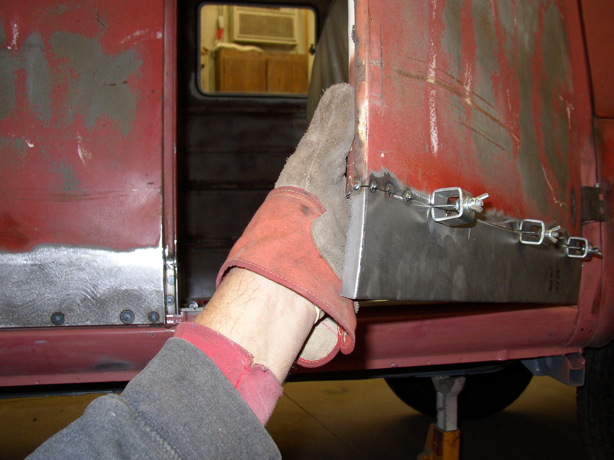 OK, I left off starting to weld the left cargo door. Sean says he wants a welding tutorial, so this may take some time. Go get something out of the fridge.