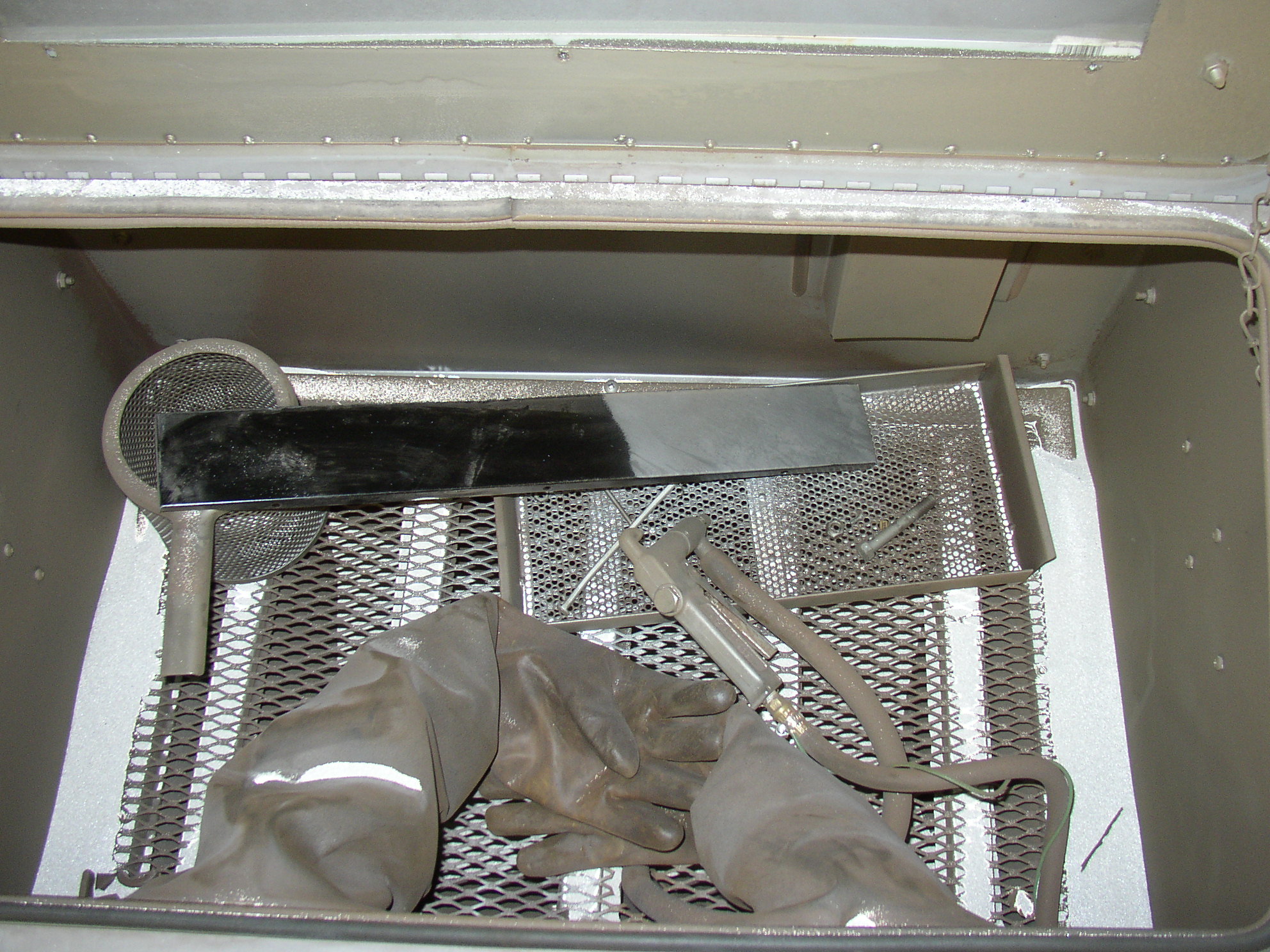 Put the panel in the blast cabinet and remove the "paint". Of the 4 panels I'm using here 3 of them are AutoCraft (England) and this one is WW. All came from WW, they must have been out of the AC front skin. Quality seems to be equal among them, all are .038-.039" thick (one mm). I think I prefer the AC panels over anything. They come lightly oiled, wipe them with brakeclean and go to work.