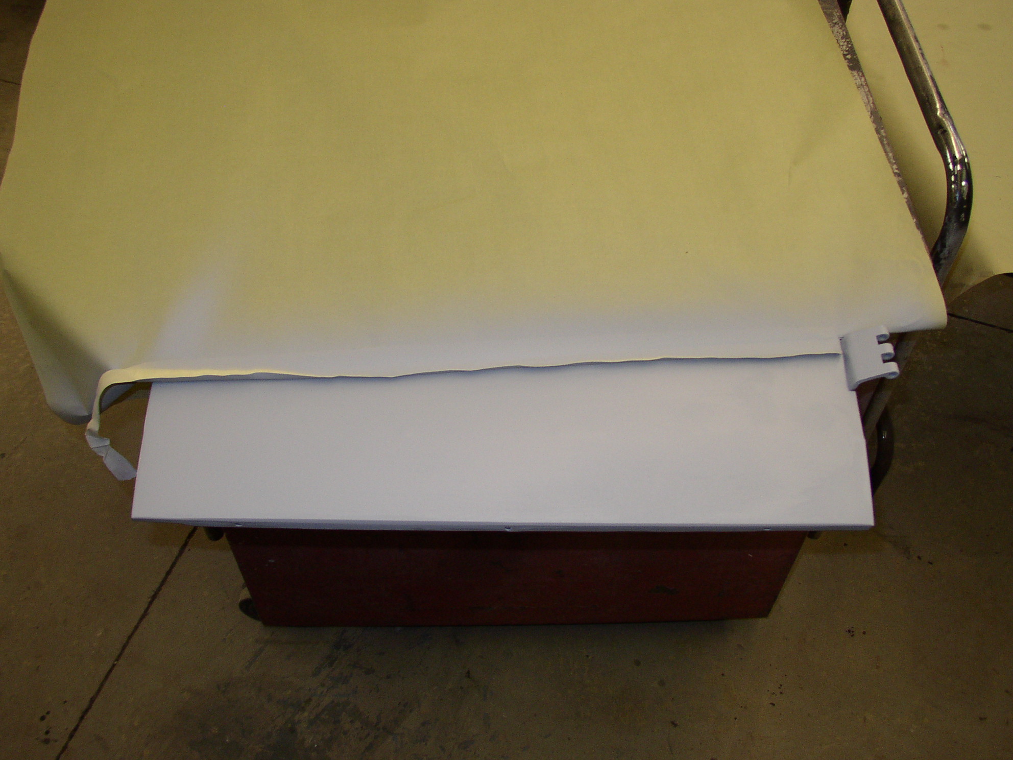 I figured it would be easier off the bus so I popped the pins and worked on a cart. More mud, then 36 grit on an air file.