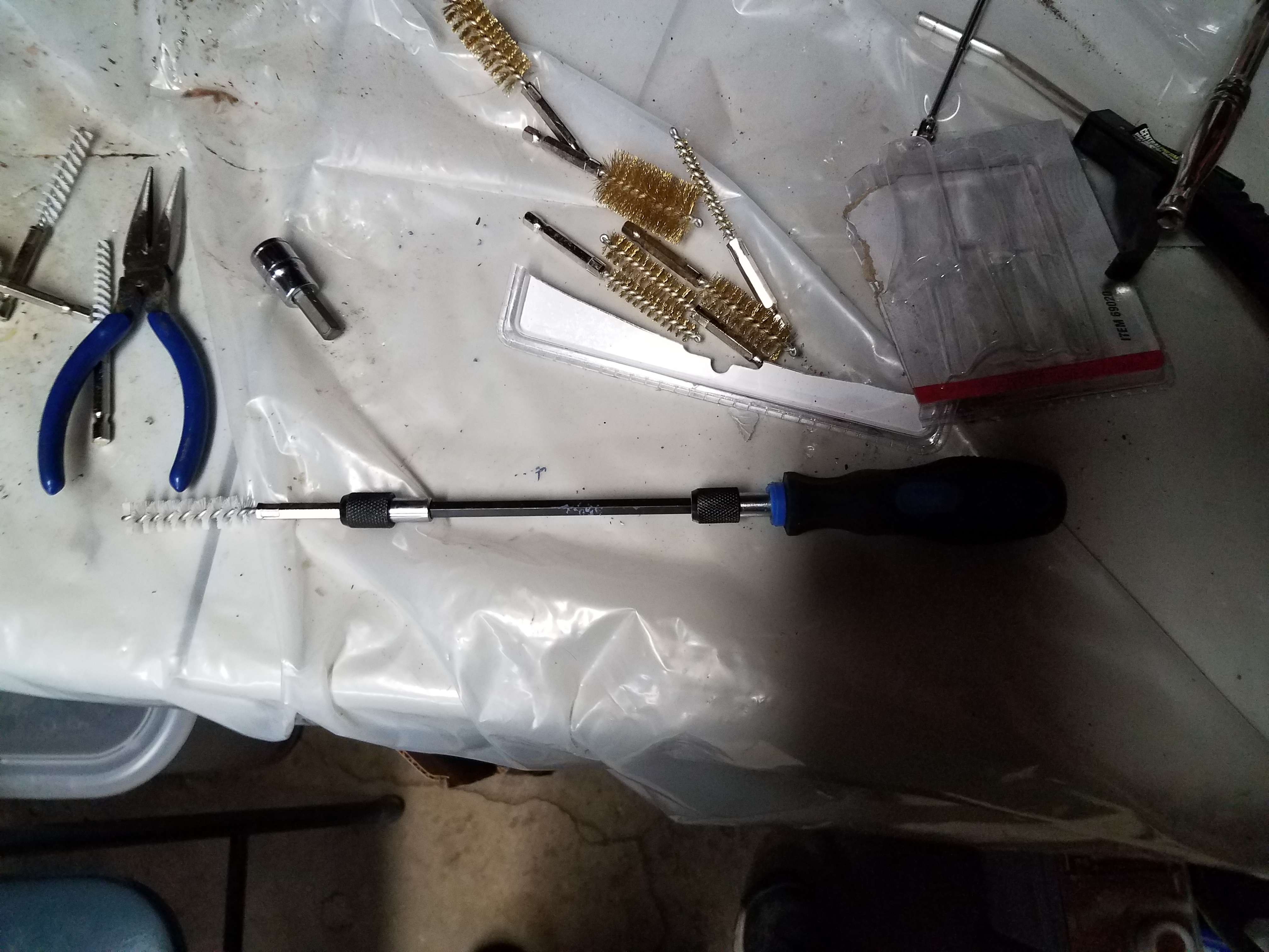 Used nylon brushes in this brush kit (also from HF) to clean out the oil gallerys