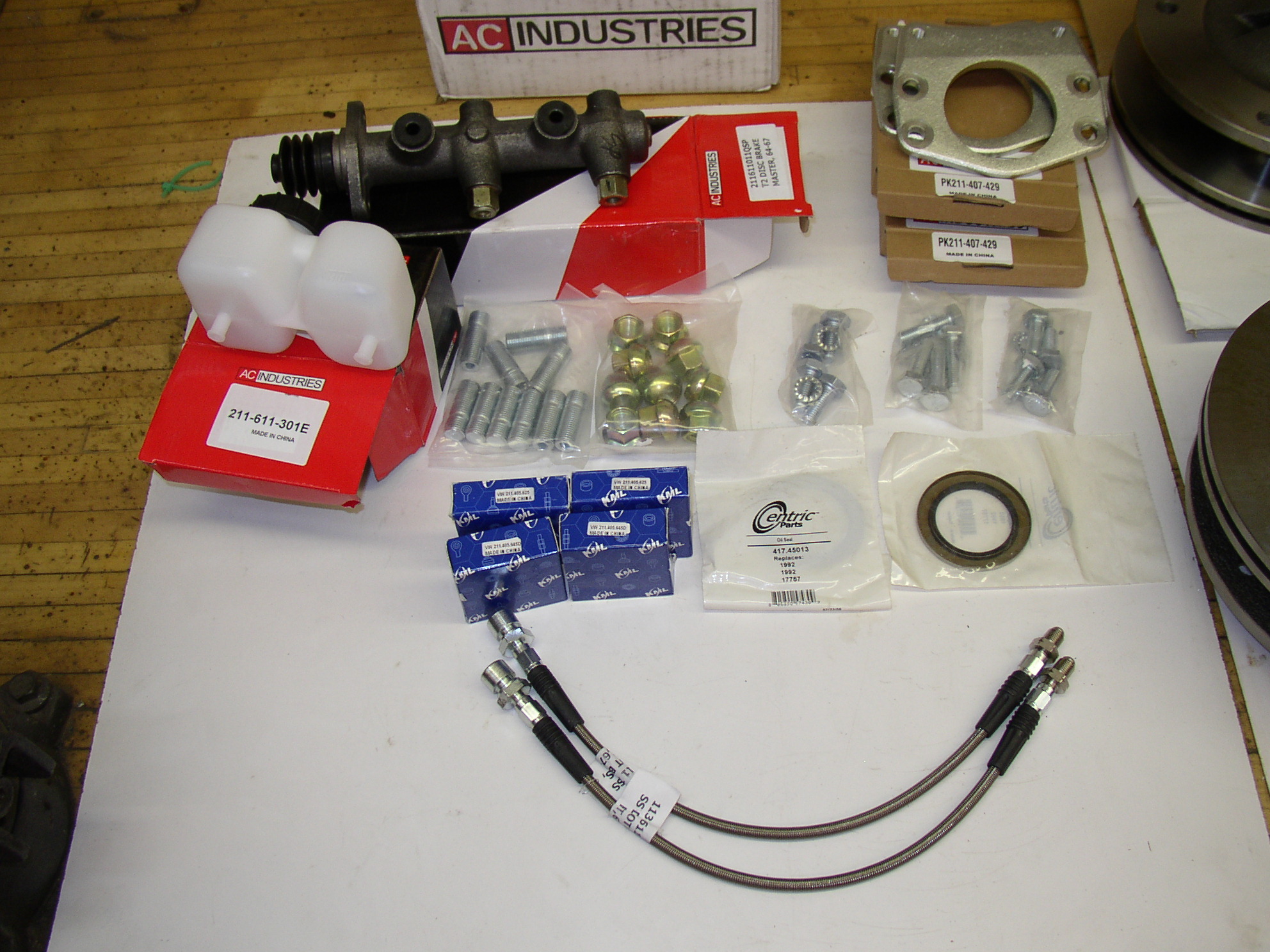 They come complete with new wheel bearings, seals, hardware, MC, reservoir, and hoses. It's all Chinese, here's what they looked like coming out of the boxes: