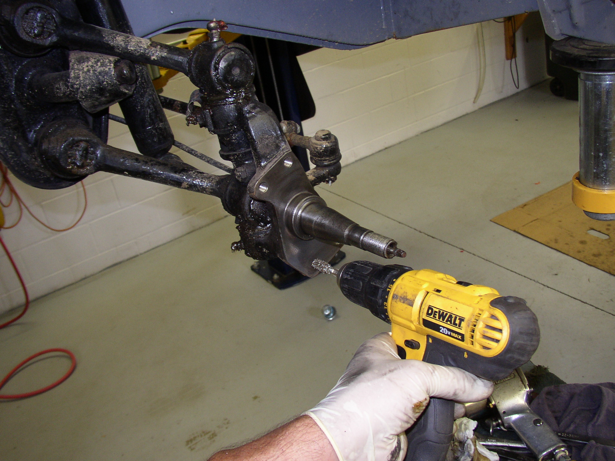 I had some spare spindles and wanted to mock them up on the bench before tearing my bus apart, so start by cleaning the flanges and threads: