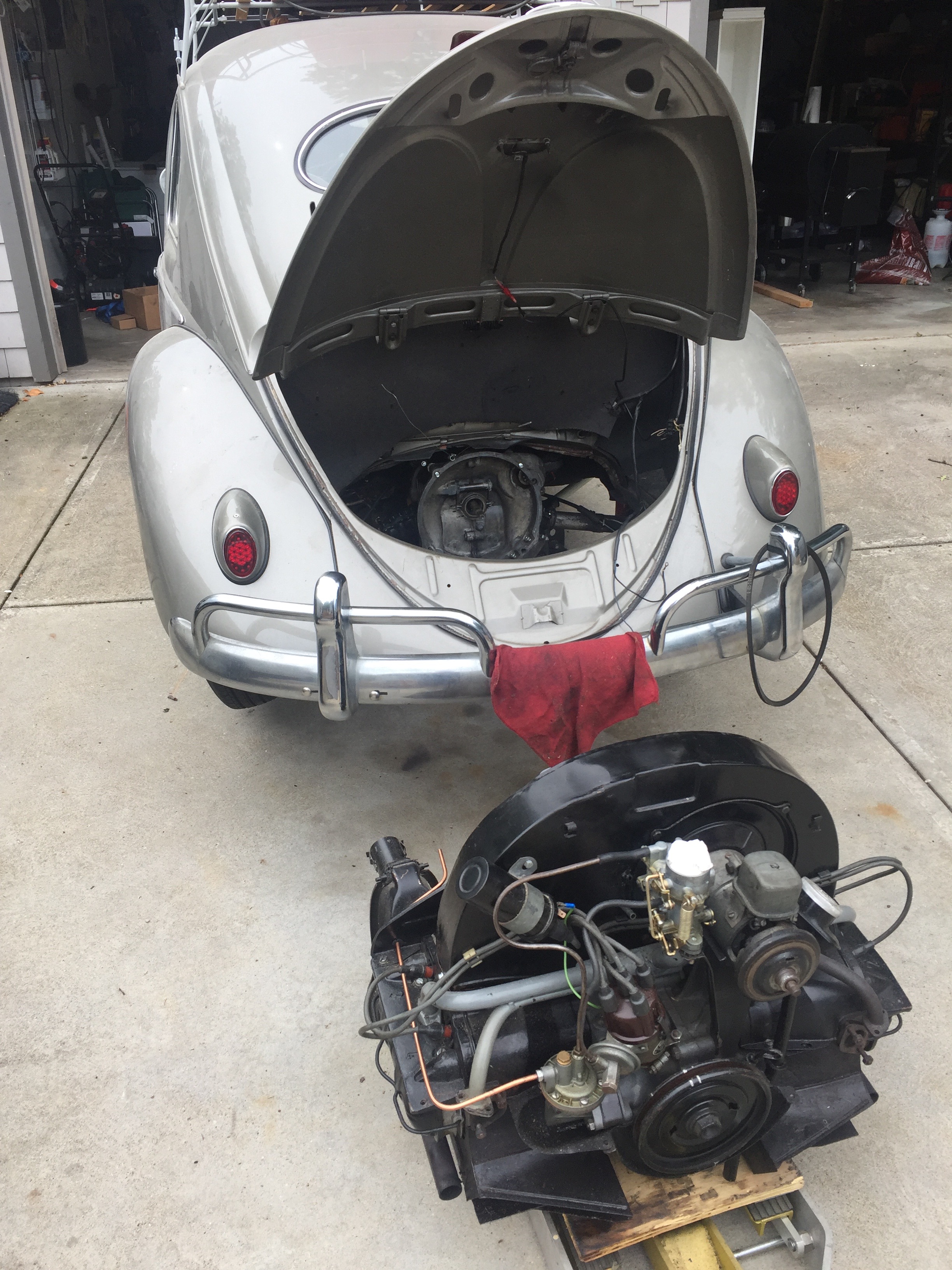 Over the winter I really thought long and hard about how I was going to use the Beetle in the coming year. It's really only a drive-around-town vehicle, and I'm fine with that, but after running this little 36HP motor hard for the past 8-9 years; the leaky split case trans; and the clutch chatter, I decided I better get after it before the days are long and warm and I'm not in the mood to be crawling around on a garage floor.
