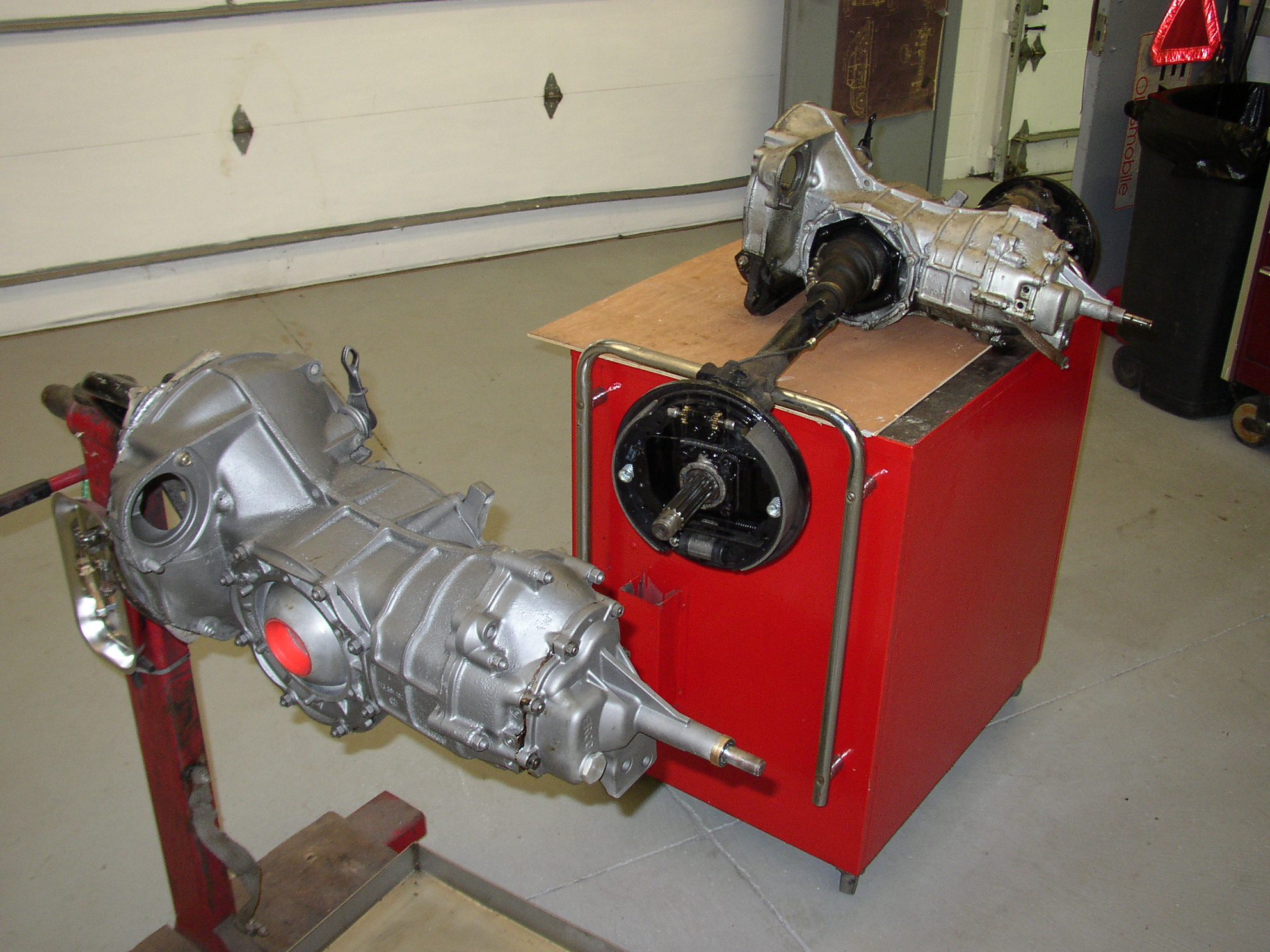 Jim's Custom finally got my tranny done so I picked it up at the show Saturday. It needed the normal stuff, a couple of synchros, 1st gear, bearings, etc. I'm splitting my time between Sean's motor and Bus 2 right now. I got Sean's long block done so I'm going to change my tranny now. Exit motor! Exit trans! I sure wish I could snap my fingers and get those axles to jump over from the old trans to the new trans. These things are a royal PITA to change axles on, the whole RGB and everything has to be torn down. At least it's all fresh so it shouldn't need anything.