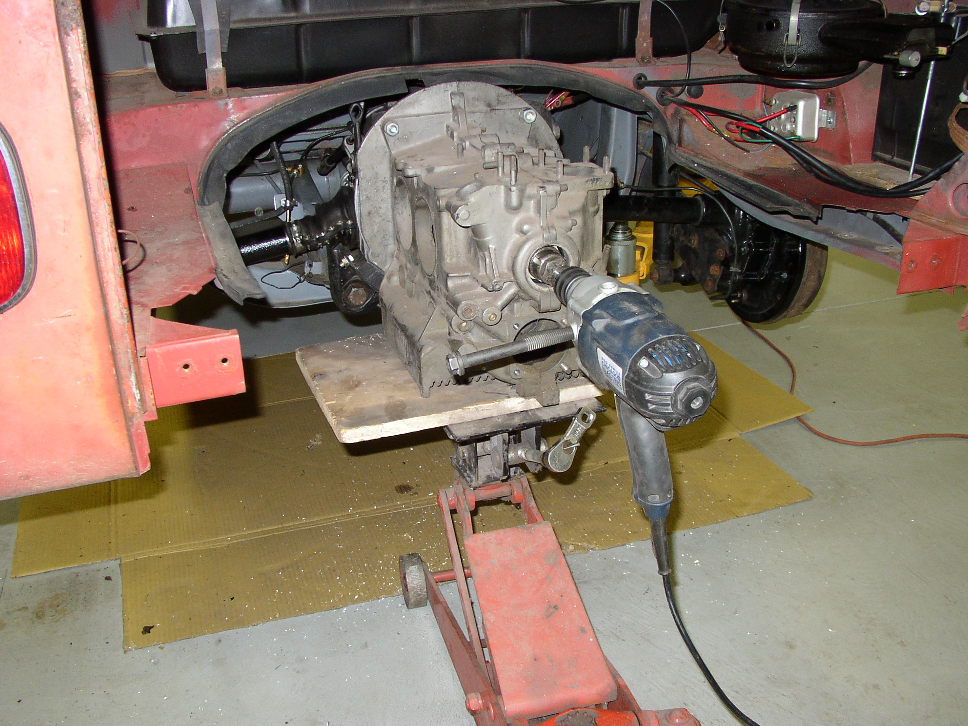 Time for something to laugh at. The trans I had built was an early 60's 6v, probably a small nut, and I put big nut axles on it but my 12v flywheel won't fit in a 6v bell. You know what comes next, the Hillbilly Bridgeport.