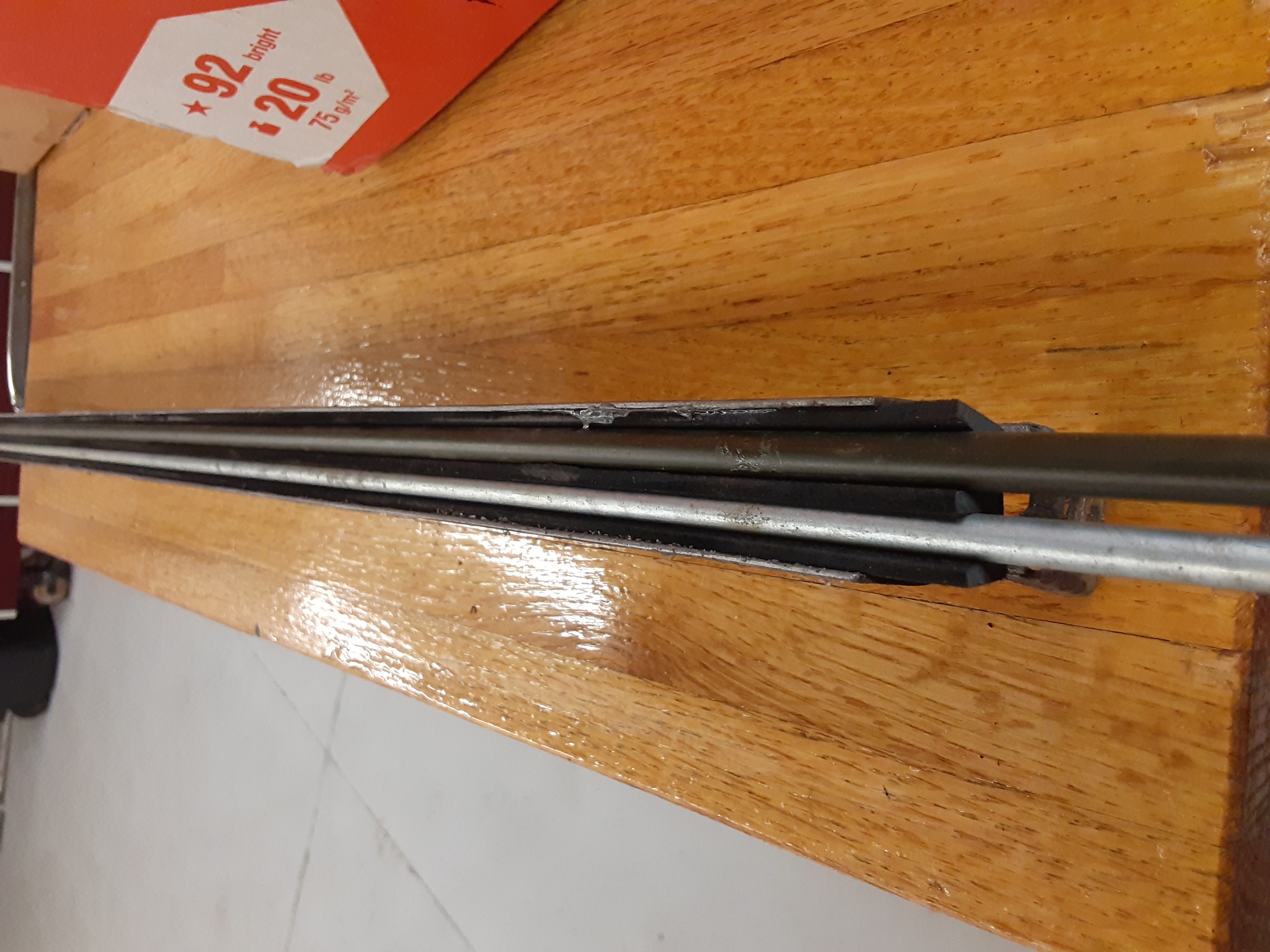 It had a big twist to it. This is closed- the top is inward about 1/4" and the bottom is outside where it should be by at least 1/2". I'm thinking 5/8"-3/4" twist, at least. Wicked air leaks and wind noise, of course. And the center is bowed out 3/8" Even though the front hinge area is kicked in over 1/4". Man, this is one messed up door. I knew this all along but didn't want to take the time when originally building the bus. I knew it would be a large investment of time to make this right. Strip the door and window frame and set up a hillbilly jig to straighten the twist out. It took some serious grunt! Muscle and prybars would not touch it without extra effort. The threaded rod is anchored to a nut bolted to the seat belt mount. Glow the hinges several times to get the angle right. Pull the door and flatten it with a giant c-clamp to get the bow out. I flattened it by over 1/2" here. Heated the window frame to make it fit also, and replaced the weatherstrips for the slider. Put some brake lines in the strips while the glue dried to make sure they dried straight. When done, it fits and closes perfect. No air leaks or wind noise. The gap at the bottom seems a bit large which makes me think it's not from this bus. If I lower it to make that gap right, the beltline is mismatched considerably. I don't want to tell you how many hours I have into this but it's way more than it looks...…...