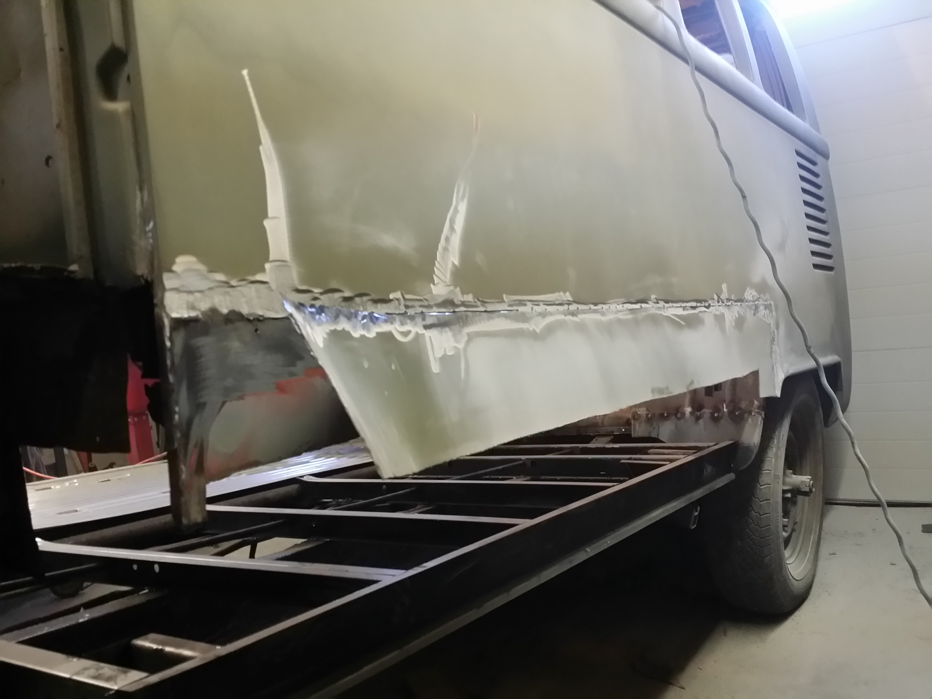 I lost count of how many times I have had the doors on and off All of this end is just tacked as I am beginning to fit the cab doors and dog legs. I finished the short rocker I am pretty confident on the C pillar position.