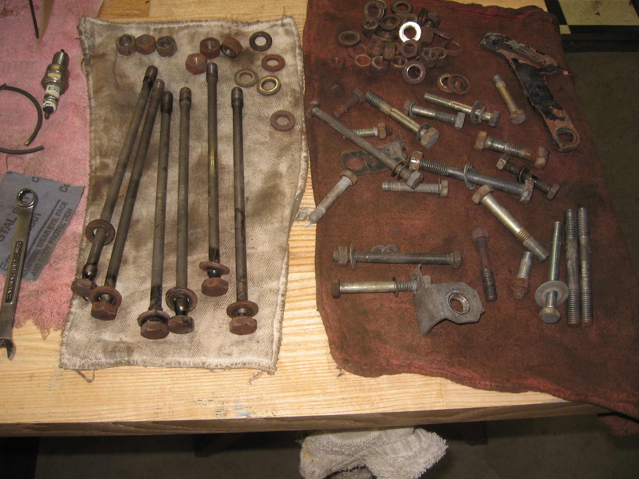 This one is a 71mm bolt that holds the oil PU and threads into the opposite side of the case. If you use one that is too long it will bottom out in the case and strip the threads in the case havlfwhen you go to torque it. This one has the ground tabs that ALL the FI grounds attach to. Cleaned it up on the wire wheel. Also,don't loose this one. the washer/spacer that goes at the bottom of the dist drive gear,T4 only uses one and it is special. The machine shop tells us that the case,rods,flywheel ,PP and crank should be done early this next week. Then the fun begins