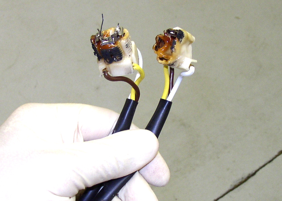 Here's the headlight bulb connectors, you don't think these would be a problem, do you? Or this wire that fell out of the dimmer switch. We don't need that, it's only the low beam feed.