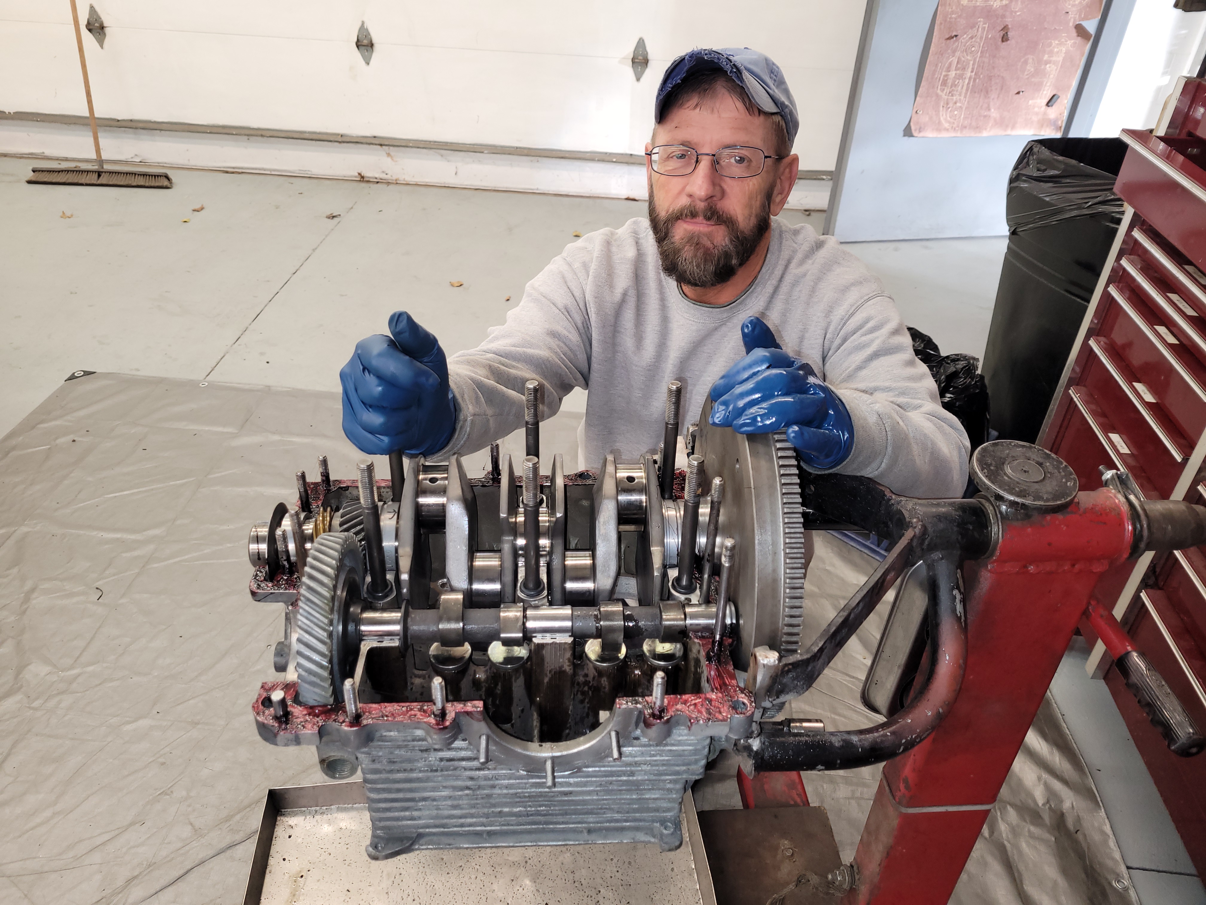 Then tear the motor down (with Joe's help) to find the cam gear sheared half of the teeth off. Neither Jim's Custom or Bill have ever seen this before.
