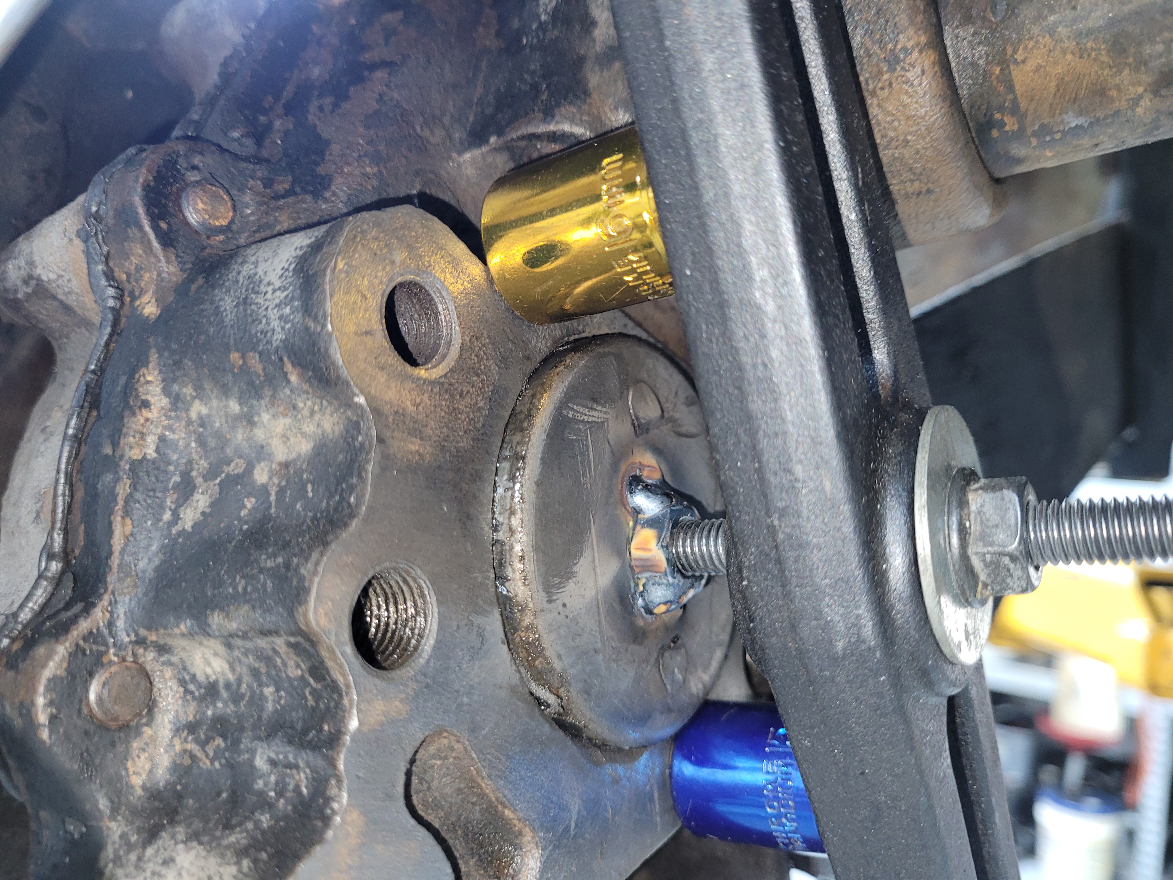 Weld nut to freeze plug.