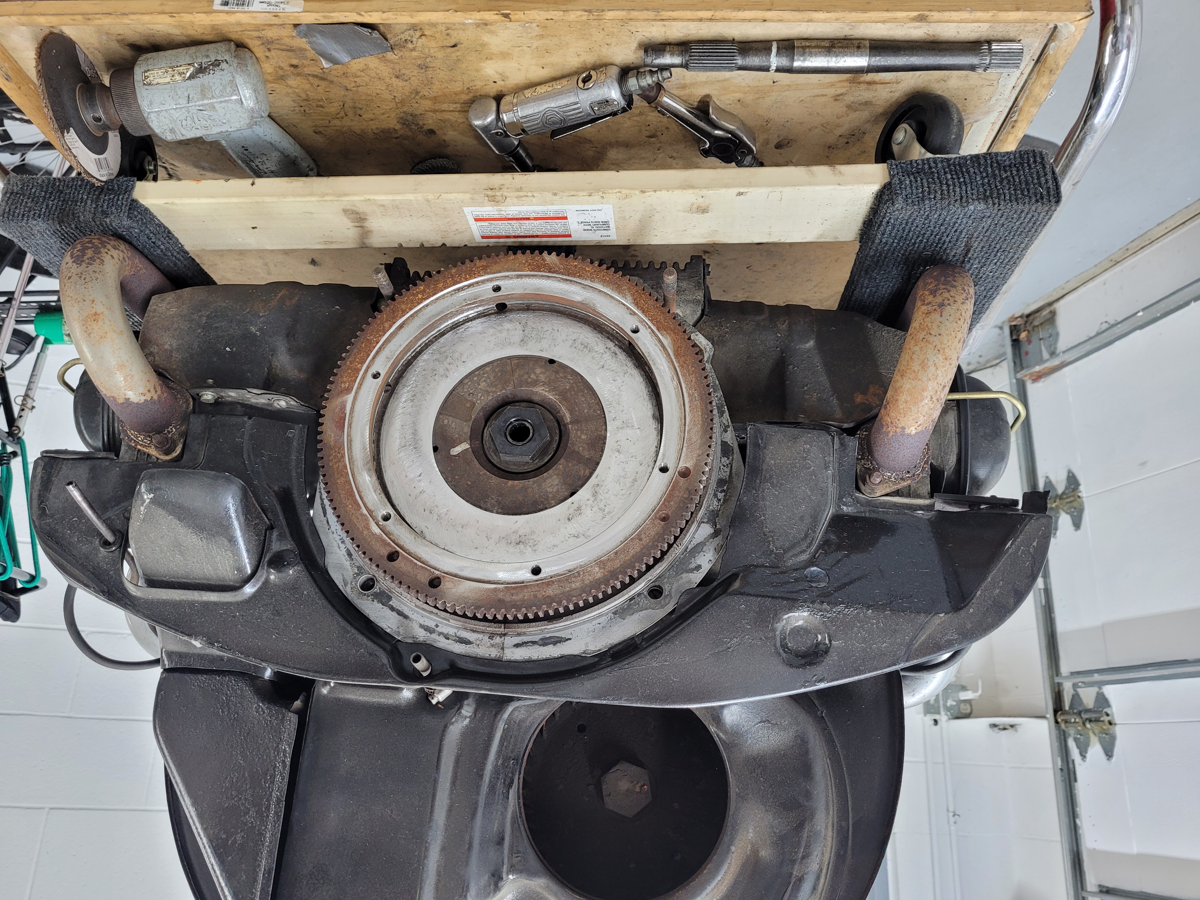 Flywheel is lightened, which is counterproductive for a bus. A lightened flywheel is good for a light sports car like a Ghia where you want it to accelerate out of the turns quickly on the track. On a heavier vehicle you want a heavy flywheel to use inertia to help launch the truck.