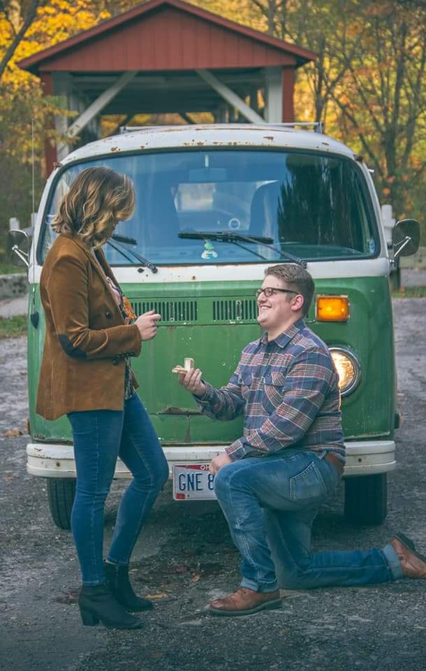 Aurora wanted to have fall pictures taken, and I managed to get her to let me have the bus in some of the pictures. I also surprised her by proposing (the photographer was in on it).