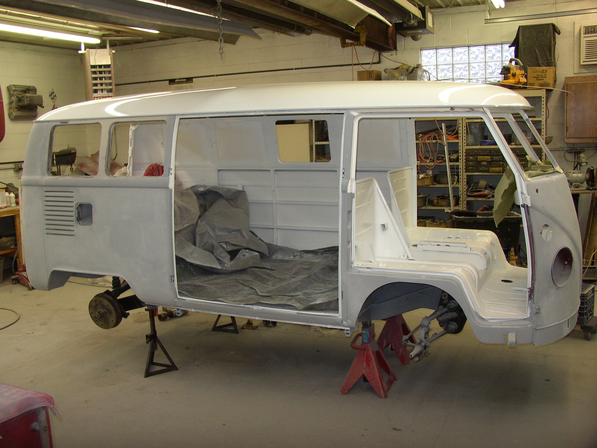 I went to Bruce's shop on Friday... these pictures don't do it justice. I saw some painted red panels there, and they are looking really nice. I can't wait to see this bus moving.