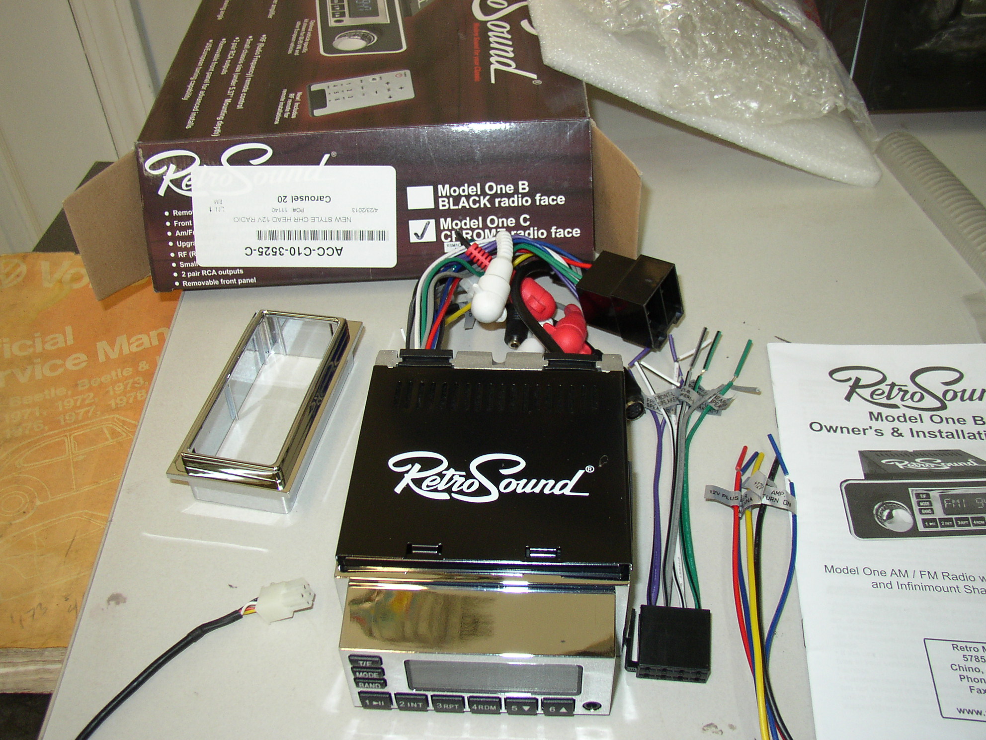 Got the stereo installed, one of the most time consuming I've ever done. Making the brackets fit is a real PITA as it's not a direct fit but more of a make-your-own. Cut, drill, bend, cut some more, shorten the shafts, etc. BS, solder all of the connections, run 2 power feeds, etc. It looks and works fine after it's in, but I have the better part of a day in it.