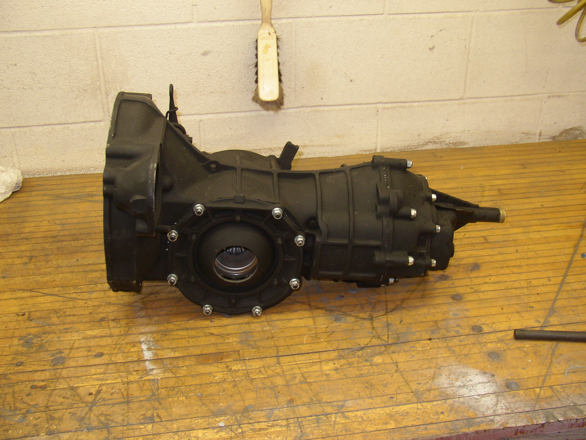 6PM last night, trans is in, mounts are snug, shifter is connected, and all gears work. TRL and Mike Noble stopped by in the afternoon and left after 5, and the tranny was still in the other room. It took under 10 minutes to stick it in and start the bolts, probably the easiest trans I ever installed.