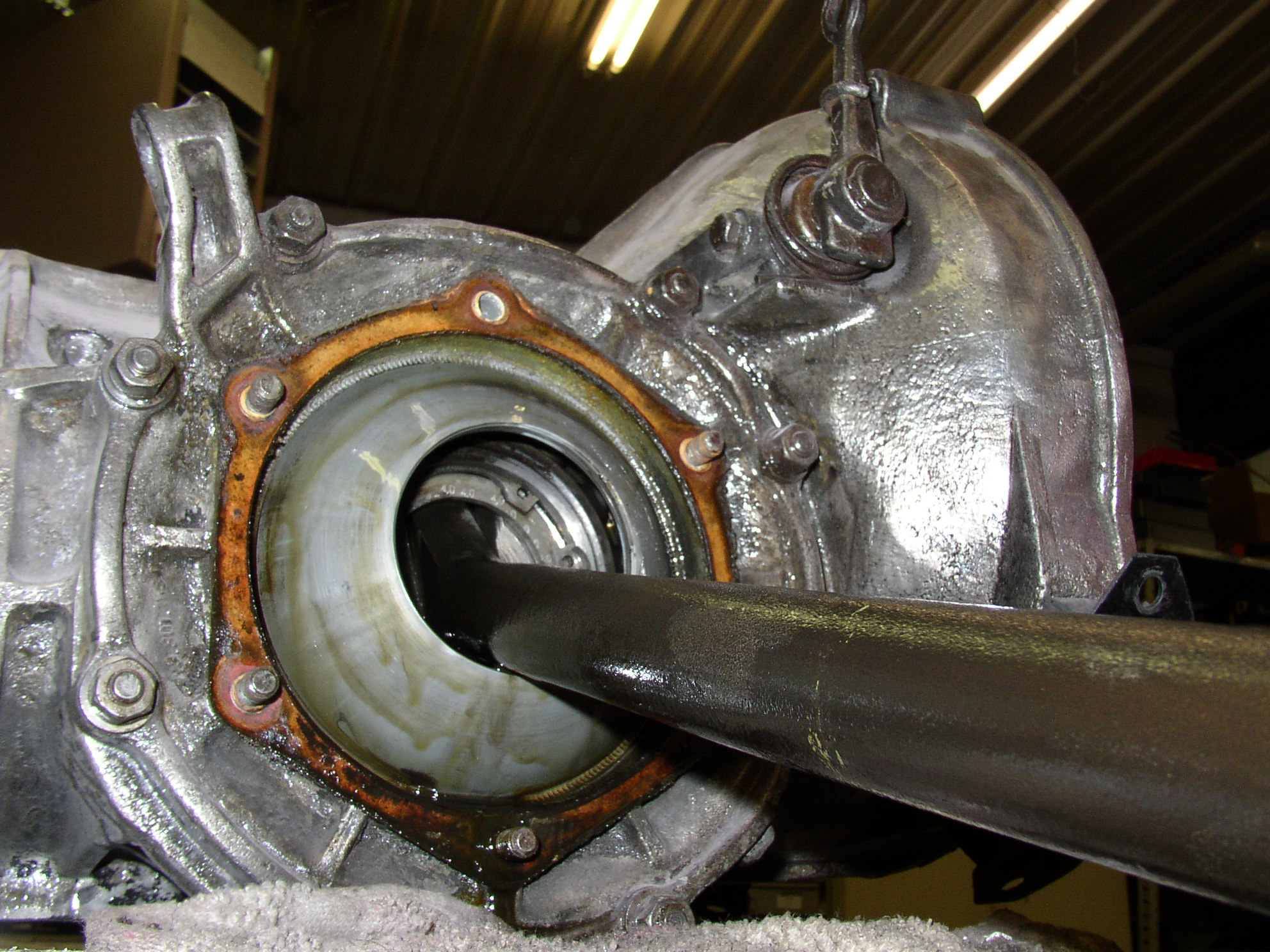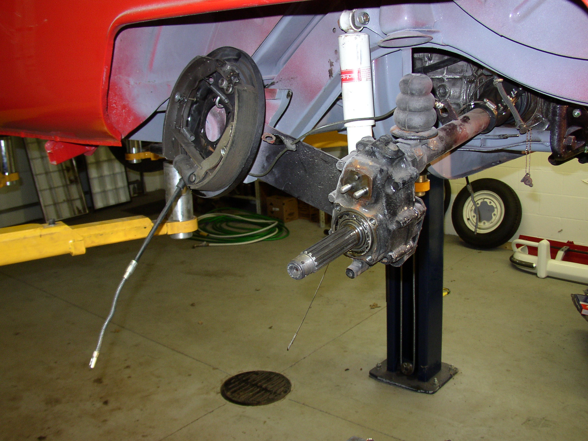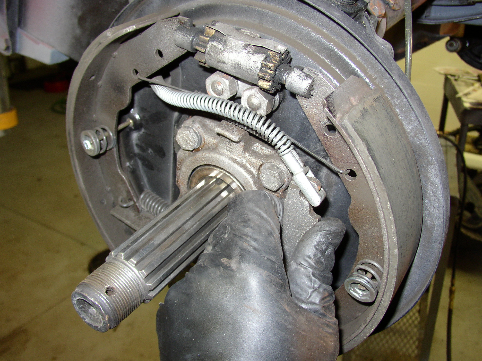 Now the trans. The shoes are dry but there was a teaspoon of fresh gear oil in each drum because it sat on the lift overnight with the axles hanging down. I'll change the axle seals again to hopefully cure this.