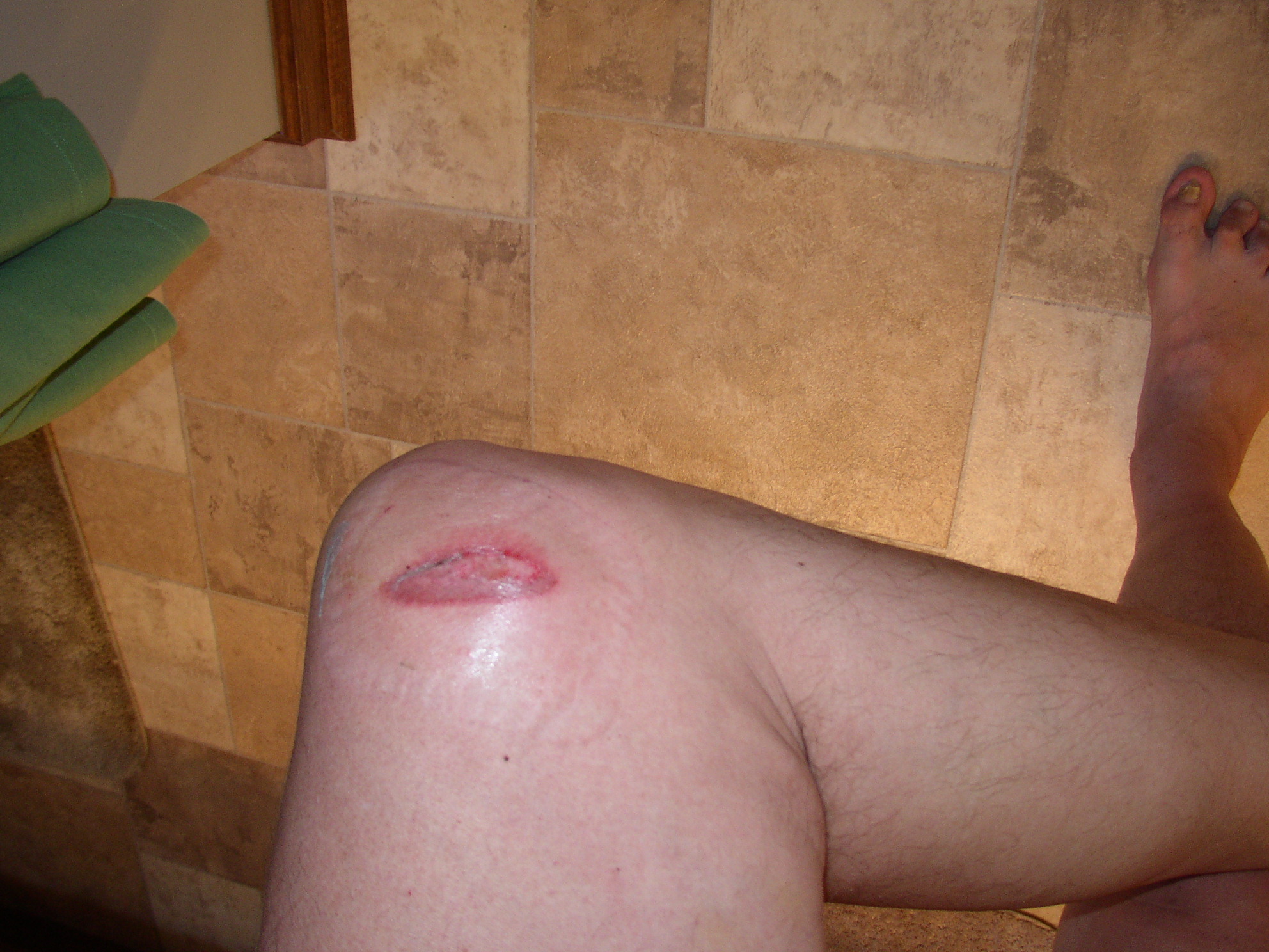 Note to self: When sitting crosslegged on a creeper behind the bus wearing shorts, do NOT run your phucking knee into the muffler. (again.)