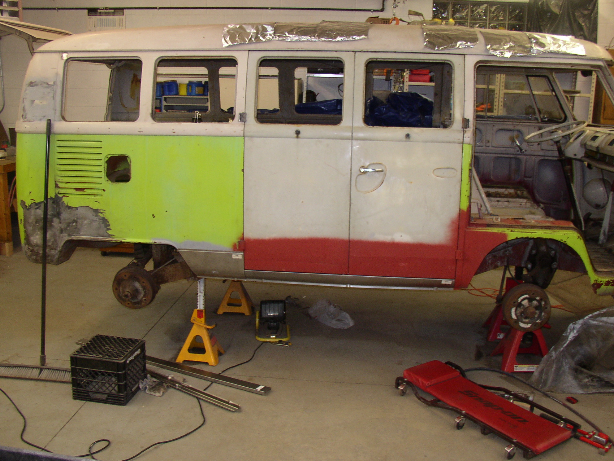 You haven't seen my welds close enough to judge them, and they suck. I have plenty of issues with hand/eye coordination, steadiness of my hand, burning through, no penetration, wandering off course, etc. I'm not young and my eyesight shows it. I can't count how many times I'm welding along, flip up my helmet to check how things are going, and find I've wandered offtrack and nowhere near the two pieces of metal I'm trying to join. I've run a complete bead before to find that it was only on one of the two pieces and the complete weld never touched one of the components. My metal fab skills regarding fitting metal together are "OK", but I'm no metal pro. My welding skills are sub-par. Blob it on, grind it off. Blob more on, burn through, fill the holes, grind it off. I'm a very uncoordinated person in general and cannot walk a straight line (sober), draw a straight line, write penmanship that people can read (even myself), or anything that requires even a bit of grace. My wife can't hang pictures in the hall because I run into the walls at home when walking. Nothing shows this uncoordination better than trying to fit and weld a body panel. If my bus looks as good as yours when it's done I'll be very happy.