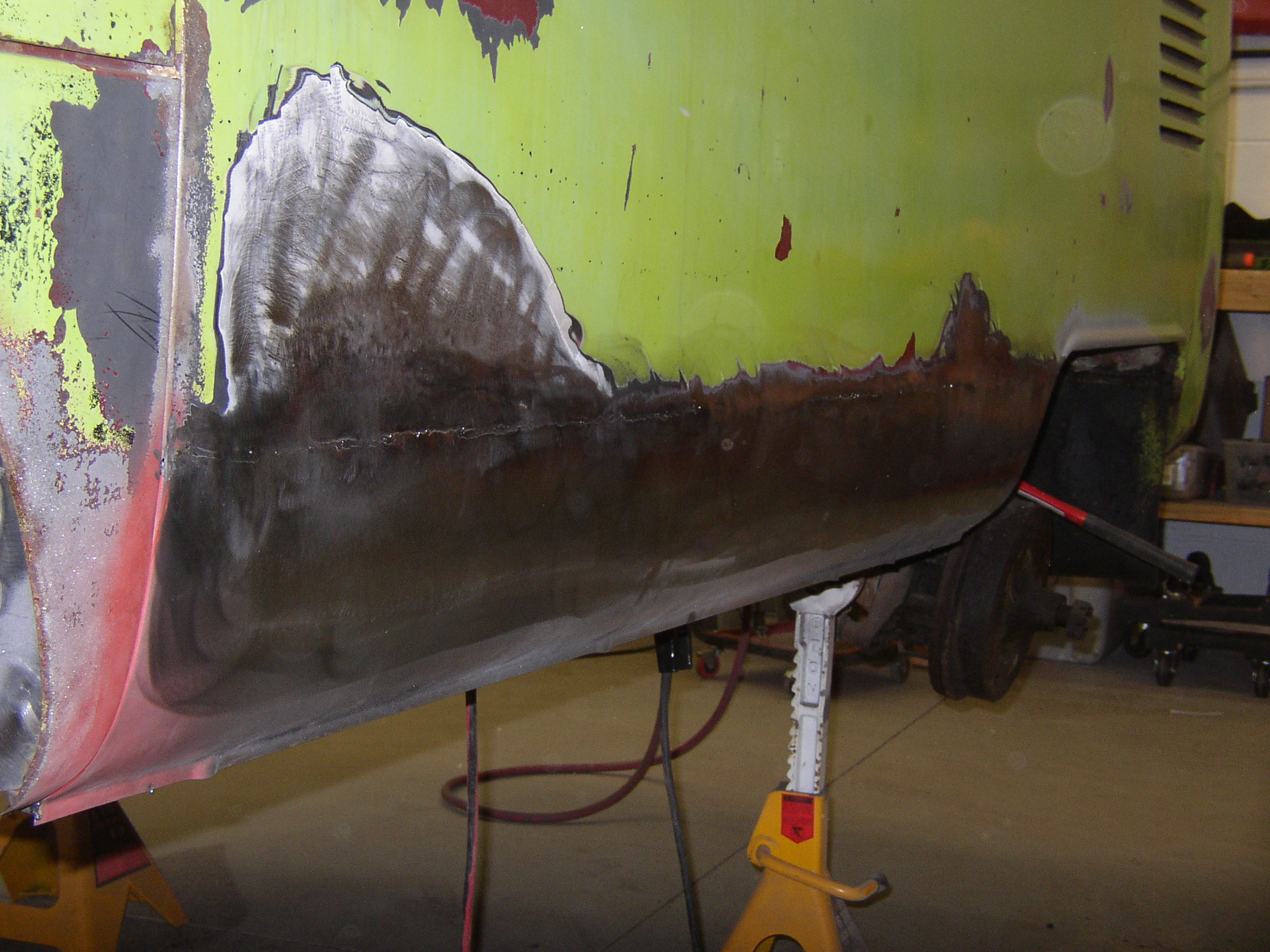 Looks like you have a nice fit with the area where the seam meets the rear wheel well. I got lucky with mine by overlapping the wheel well flange on the new metal that covered that connection point. I didn't know what I as doing. I was just lucky! Your's looks a lot better than mine!