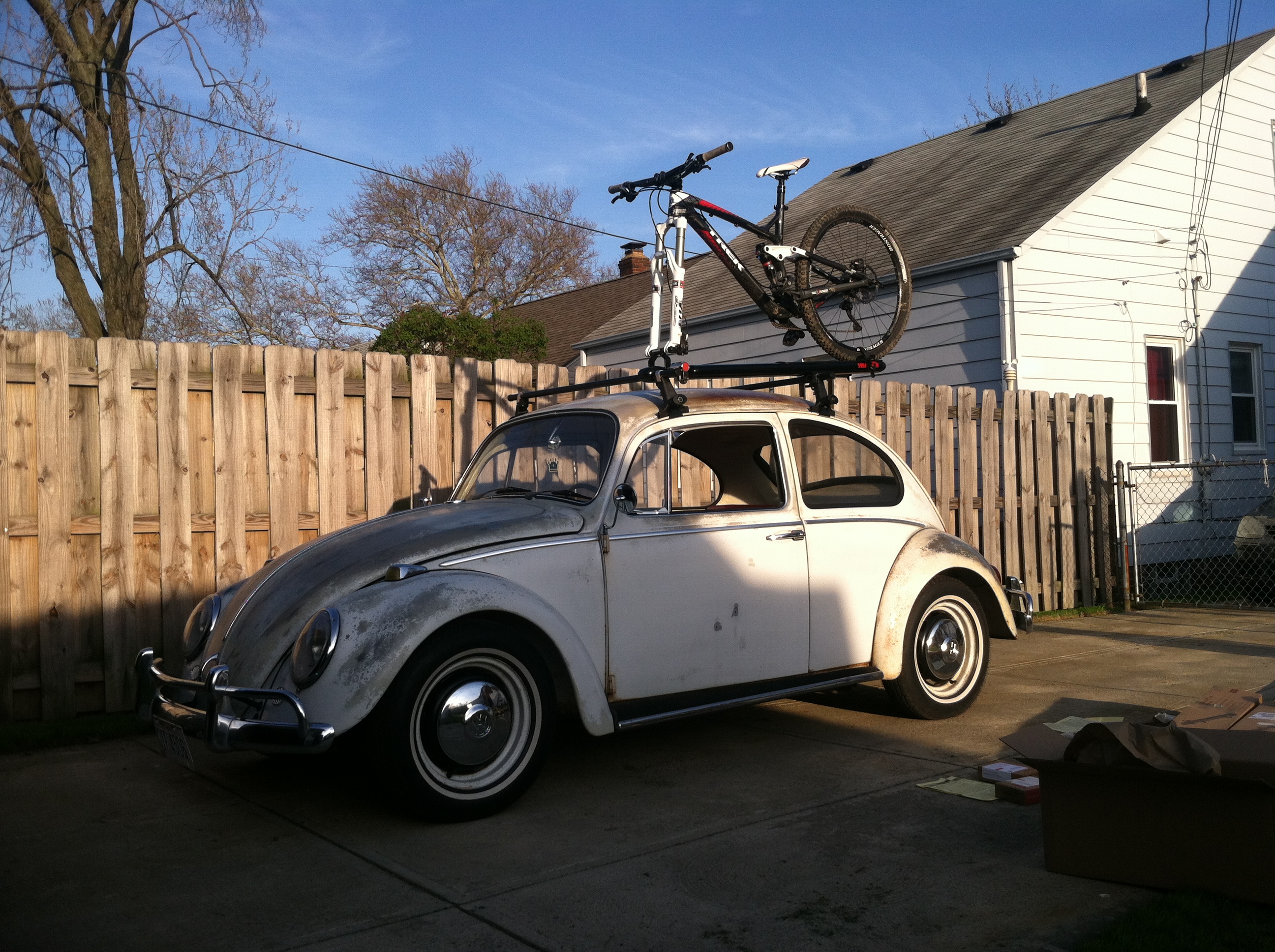 I just came across this photo that I took of Dual Port's secret den of VW sins. The level of detail that Bruce put into his bus is amazing. The level of detail that I took in the paint on my beetle is disgraceful.....anyway, been putting some good miles on the car and even took a good ride down the interstate yesterday. It was actually pretty smooth and fairly quiet now that most of the interior is in. I will be strapping the mountain bike to the top today and going for a rip in Strongsville. Thanks to Yakima Racks for the hook up.