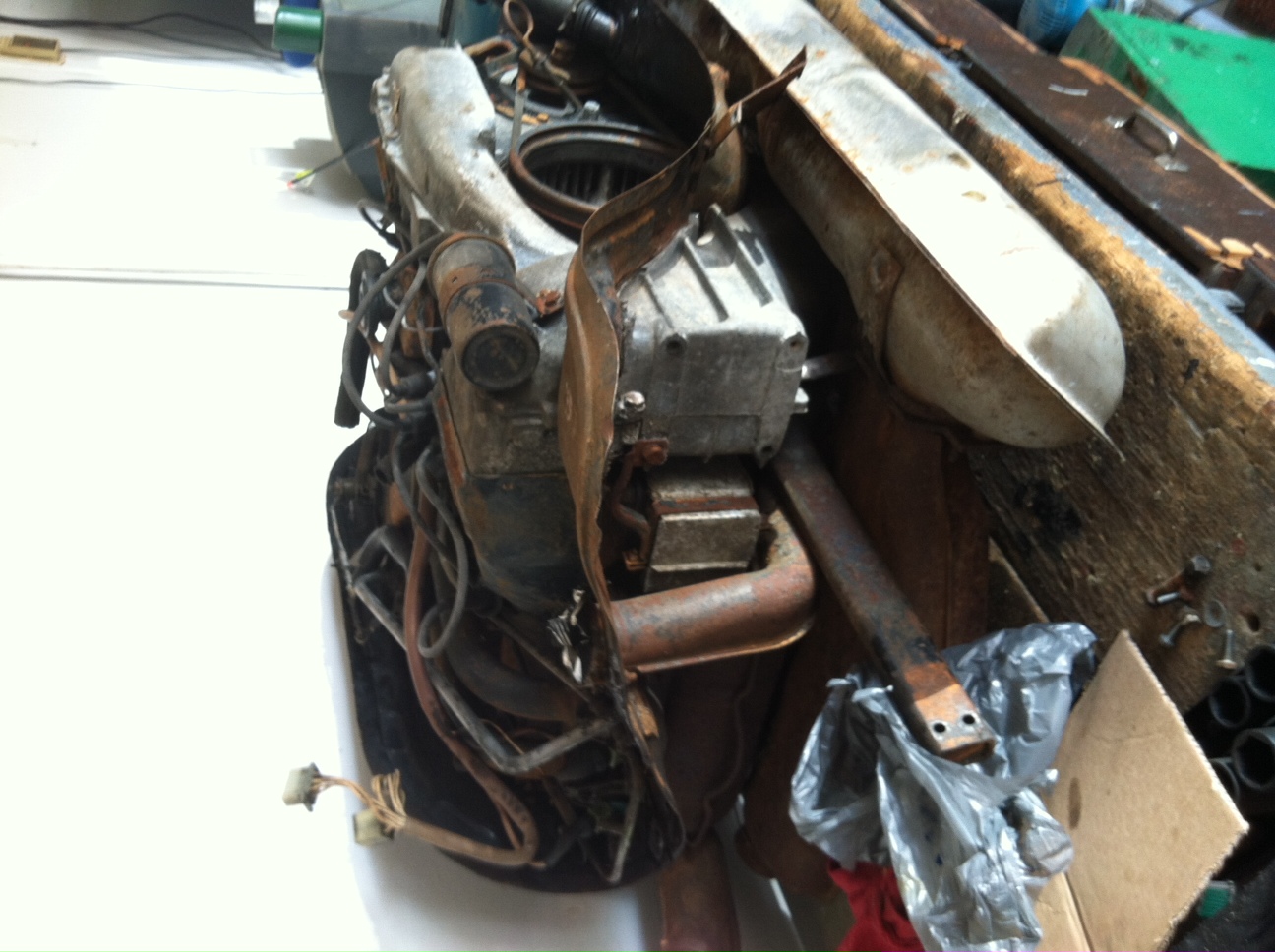 Yesterday my son and I pulled the engine from the parts bus.